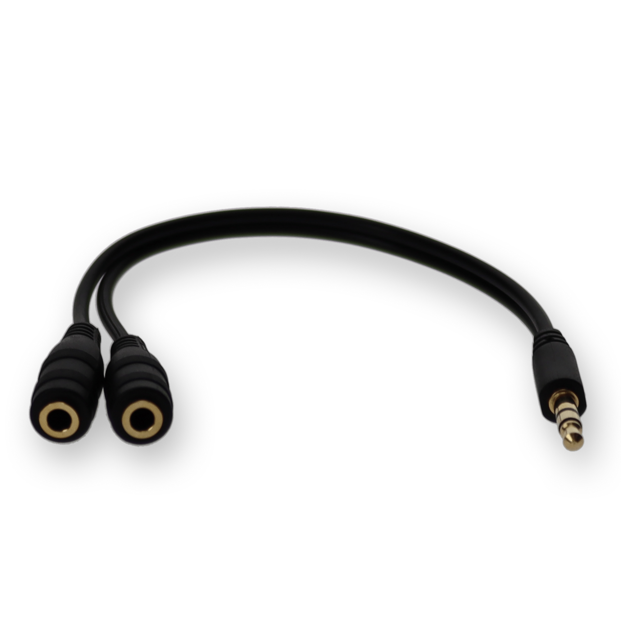 This is an 8in 3.5mm Audio (In) male to 2x 3.5mm Audio (Out) female black audio splitter for connectivity between audio devices. This part is designed to fit your application needs by providing 3.5mm Audio Input to 2x3.5mm Audio Output connectivity. Our 100% tested audio splitters are backed by a 3 year warranty and are guaranteed to work the first time.