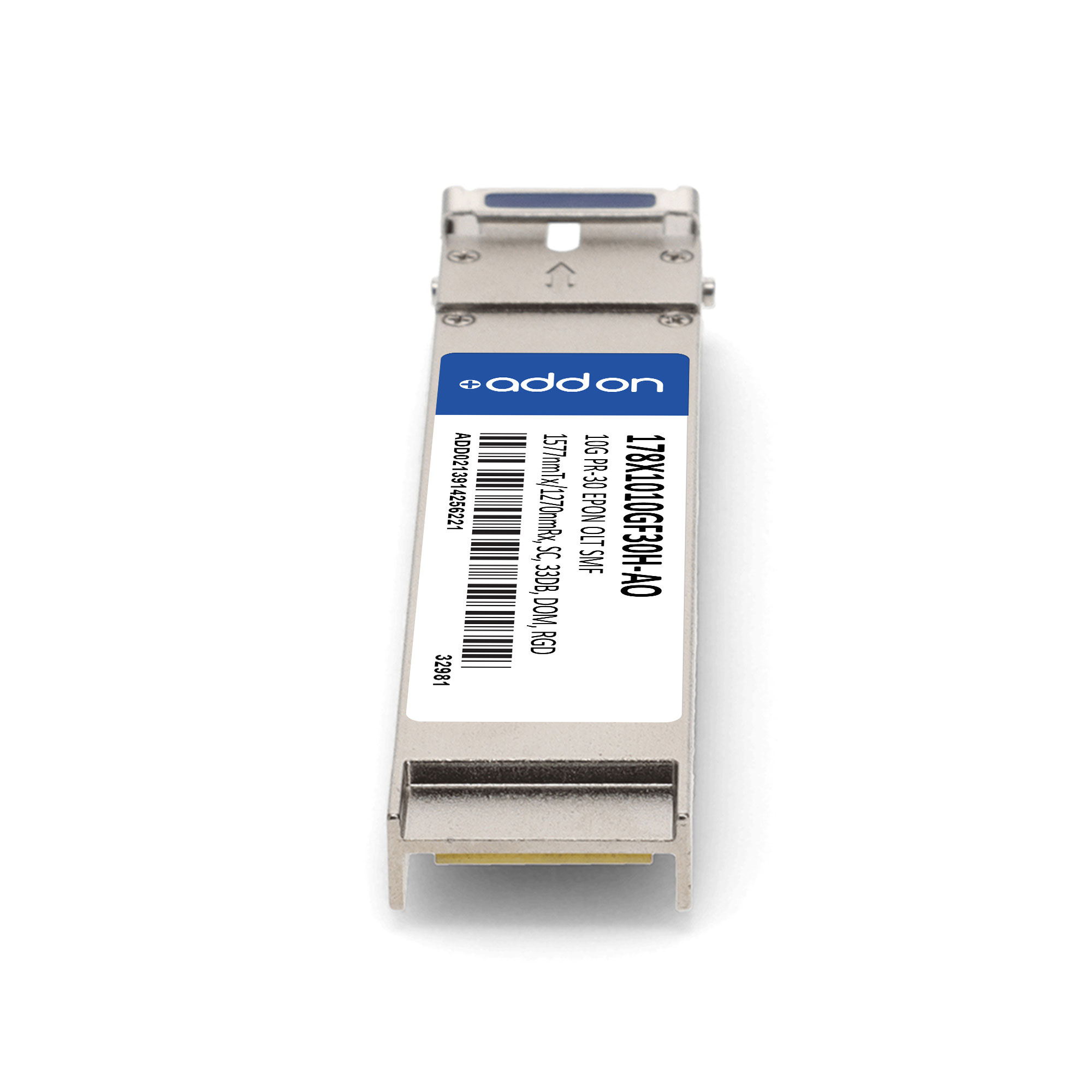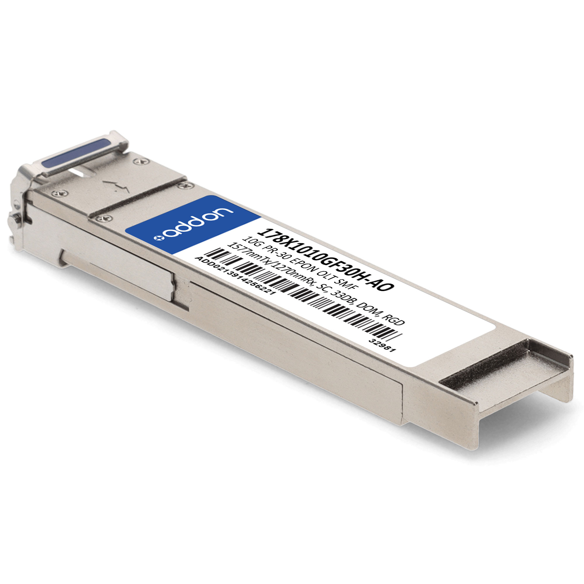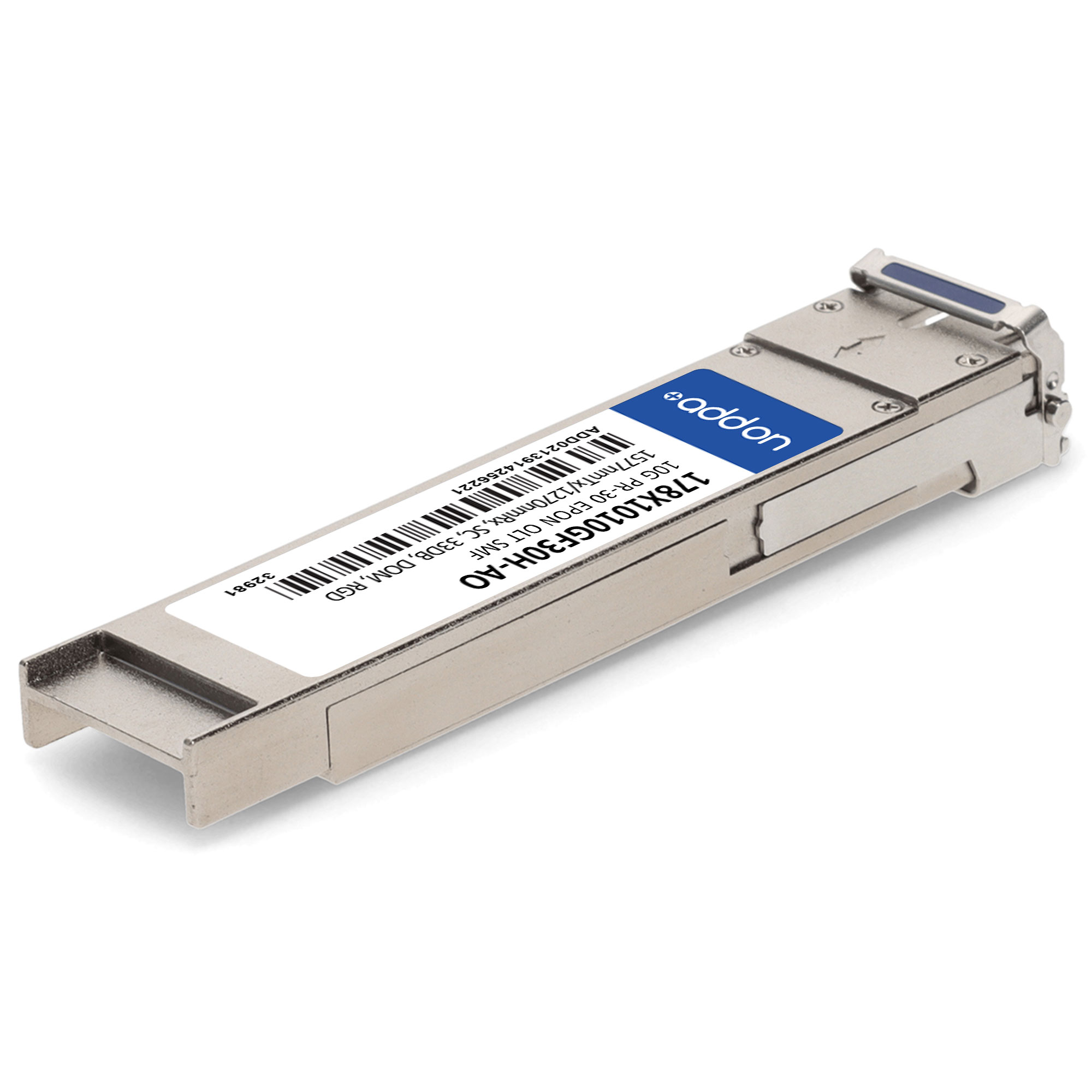 This ADTRAN® 178X1010GF30H compatible XFP transceiver provides 10GBase-OLT throughput up to 20km over single-mode fiber (SMF) using a wavelength of 1577nmTx/1270nmRx via a SC connector. It can operate at temperatures between -40 and 85C. It is guaranteed to be 100% compatible with the equivalent ADTRAN® transceiver. This easy to install, hot swappable transceiver has been programmed, uniquely serialized and data-traffic and application tested to ensure that it will initialize and perform identically. Digital optical monitoring (DOM) support is also present to allow access to real-time operating parameters. This transceiver is Trade Agreements Act (TAA) compliant. We stand behind the quality of our products and proudly offer a limited lifetime warranty.