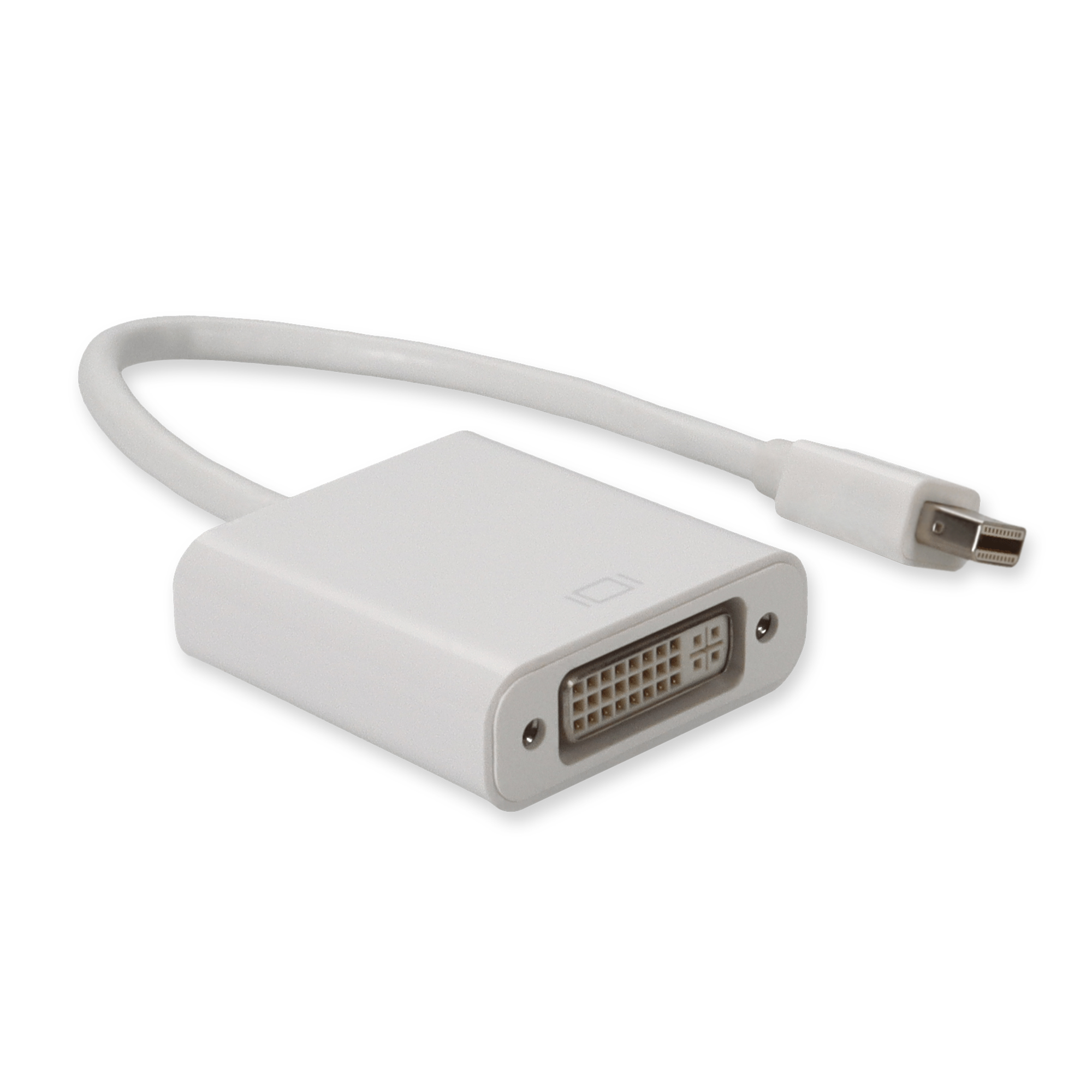 This is an 8in Mini-DisplayPort male to DVI-I female white adapter cable for connectivity between display devices. This part is designed to fit your application needs by providing Mini-DisplayPort 1.1 to DVI-I (29 pin) connectivity. Our 100% tested MDP to DVI adapter cables are backed by a 3 year warranty and are guaranteed to work the first time.