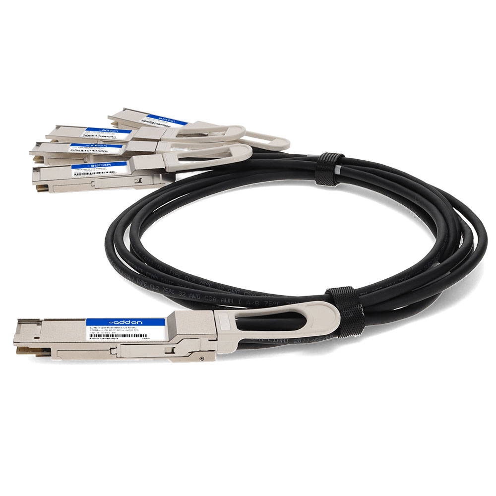 This is a Cisco® QDD-4QSFP28-400-CU1M compatible TAA compliant 200GBase-CU QSFP-DD 200G to 4xQSFP28 50G NRZ direct attach cable that operates over passive copper with a maximum reach of 1.0m (3.3ft). It has been programmed, uniquely serialized, and data-traffic and application tested to ensure it is 100% compliant and functional. This direct attach cable is TAA (Trade Agreements Act) compliant, and is built to comply with MSA (Multi-Source Agreement) standards. We stand behind the quality of our products and proudly offer a limited lifetime warranty.