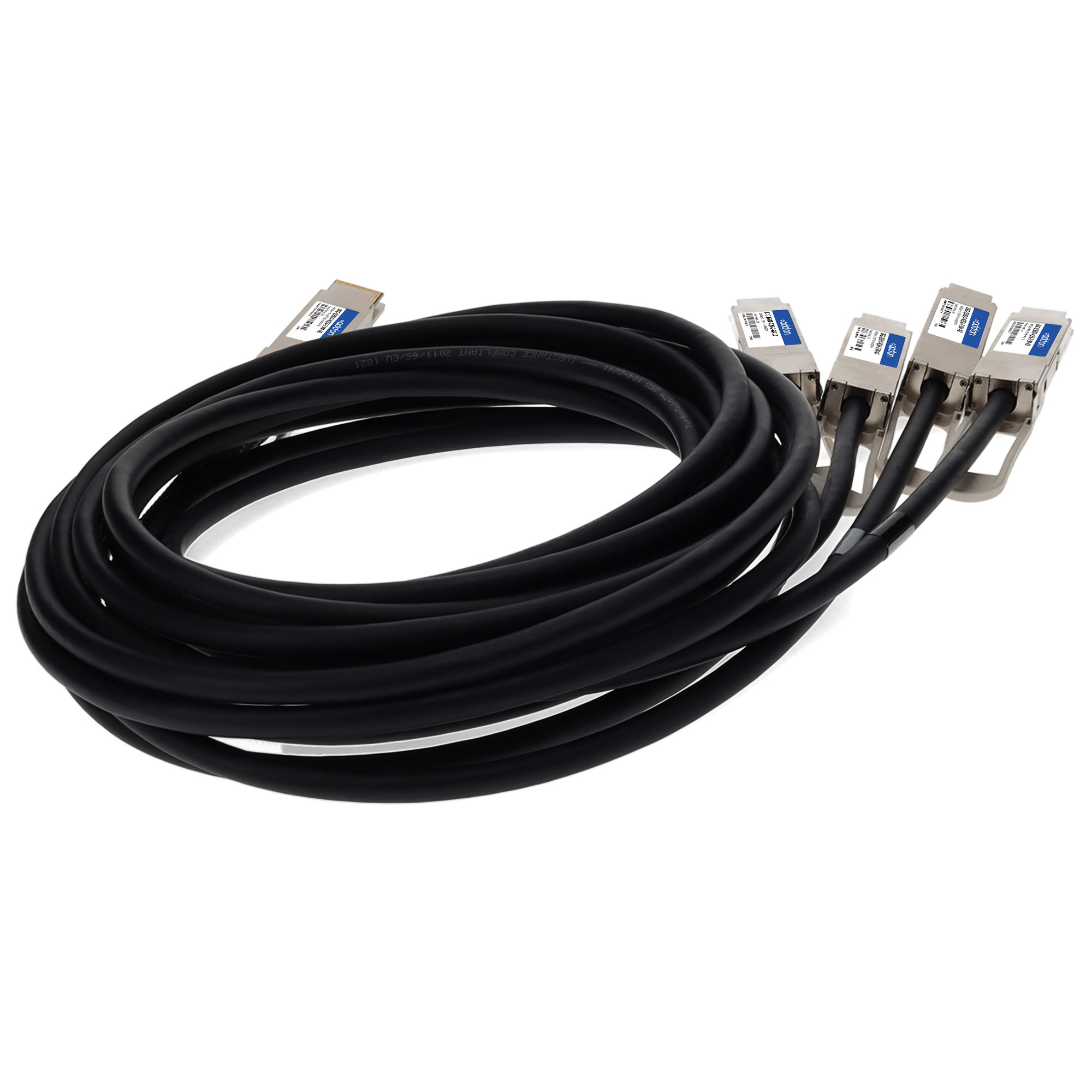 This is a Dell® DAC-Q56DD-4Q56-2-5M compatible TAA compliant 400GBase-CU QSFP-DD 400G to 4xQSFP56 100G PAM-4 direct attach cable that operates over passive copper with a maximum reach of 2.5m (8.2ft). It has been programmed, uniquely serialized, and data-traffic and application tested to ensure it is 100% compliant and functional. This direct attach cable is TAA (Trade Agreements Act) compliant, and is built to comply with MSA (Multi-Source Agreement) standards. We stand behind the quality of our products and proudly offer a limited lifetime warranty.