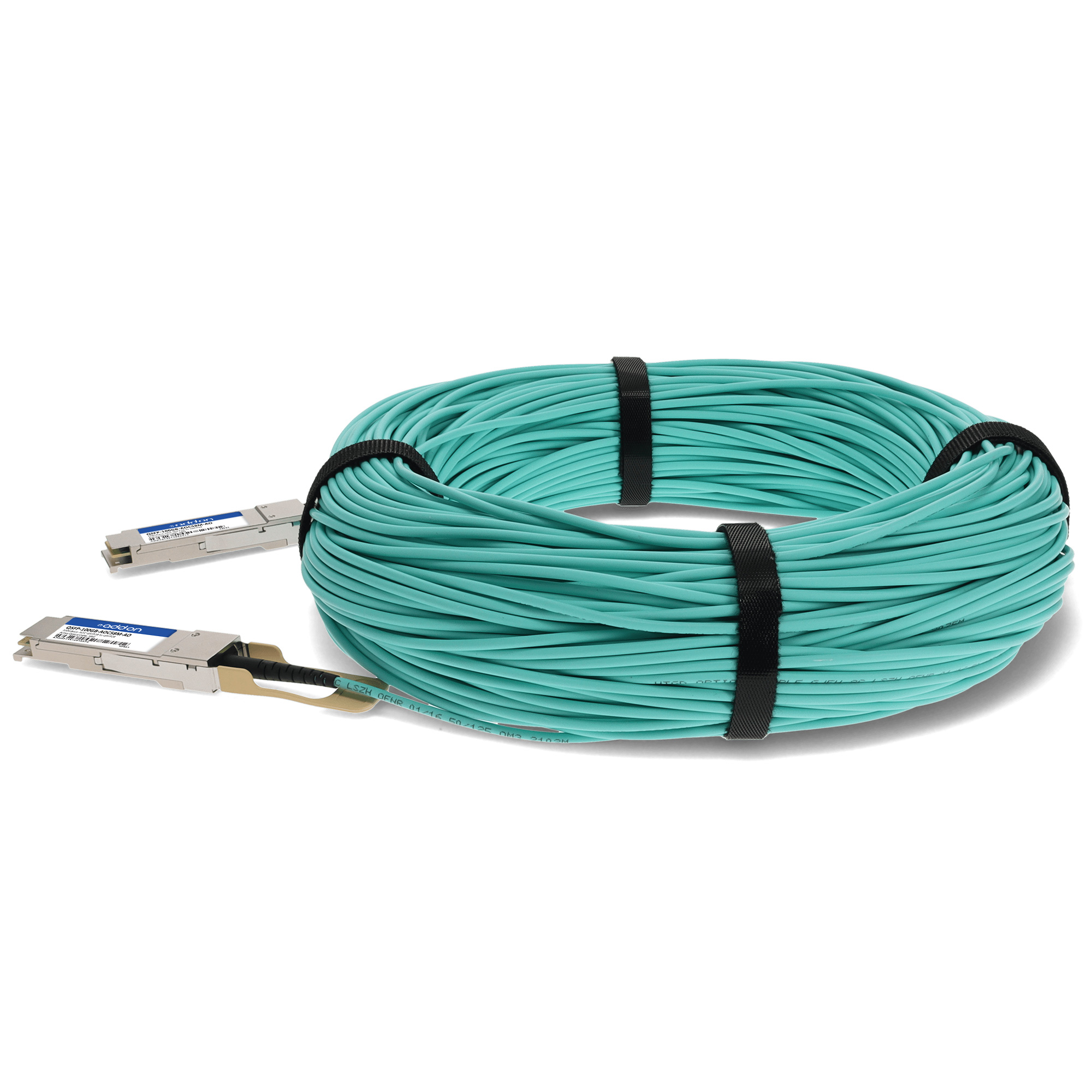 This is an MSA compliant 100GBase-AOC QSFP28 to QSFP28 active optical cable that operates over multi-mode fiber with a maximum reach of 58.0m (190.3ft). At a wavelength of 850nm, it has been programmed, uniquely serialized, and data-traffic and application tested to ensure it is 100% compliant and functional. This active optical cable is TAA (Trade Agreements Act) compliant, and is built to comply with MSA (Multi-Source Agreement) standards. We stand behind the quality of our products and proudly offer a limited lifetime warranty.