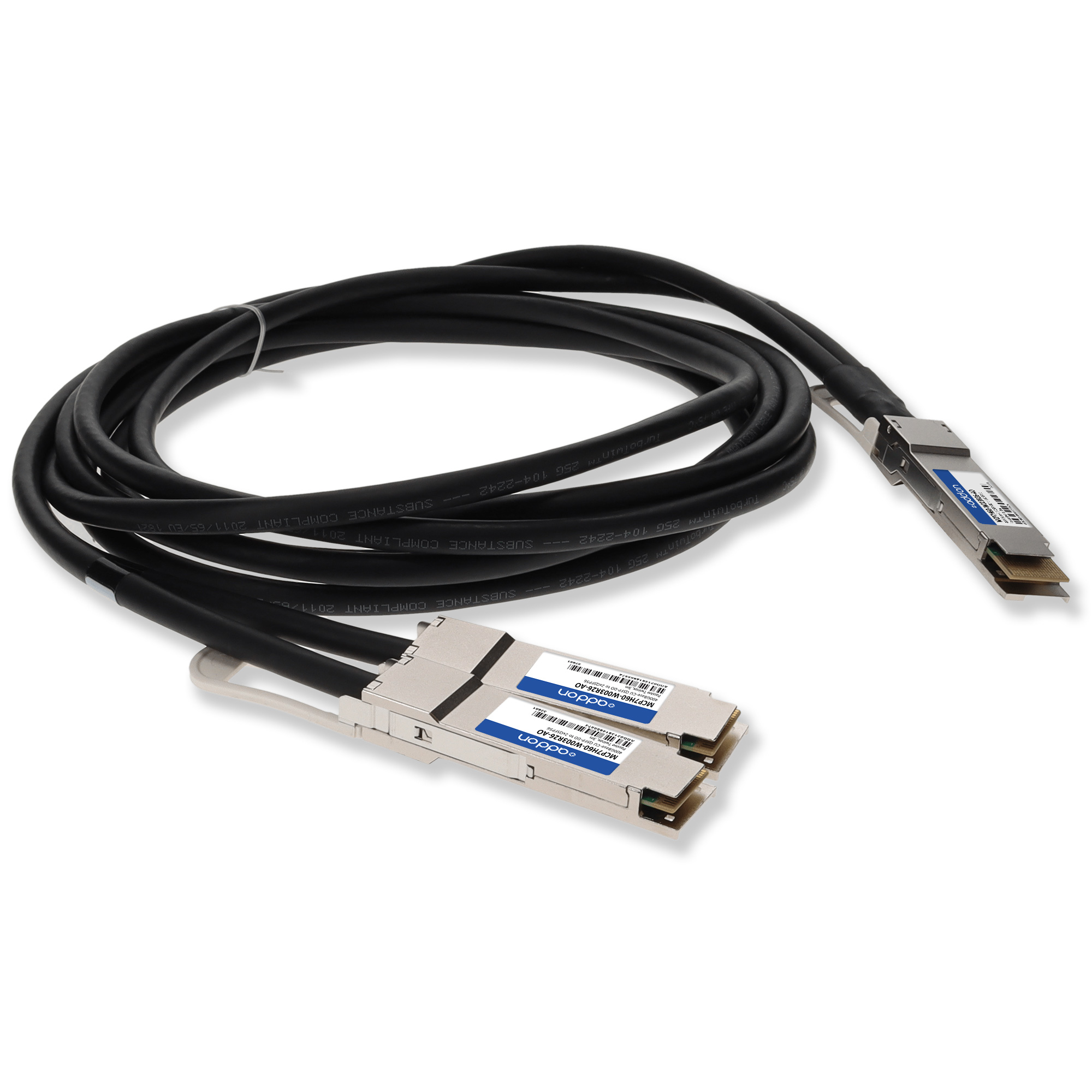 This is a Mellanox® MCP7H60-W003R26 compatible TAA compliant 400GBase-CU QSFP-DD 400G to 2xQSFP56 200G PAM-4 direct attach cable that operates over passive copper with a maximum reach of 3.0m (9.8ft). It has been programmed, uniquely serialized, and data-traffic and application tested to ensure it is 100% compliant and functional. This direct attach cable is TAA (Trade Agreements Act) compliant, and is built to comply with MSA (Multi-Source Agreement) standards. We stand behind the quality of our products and proudly offer a limited lifetime warranty.