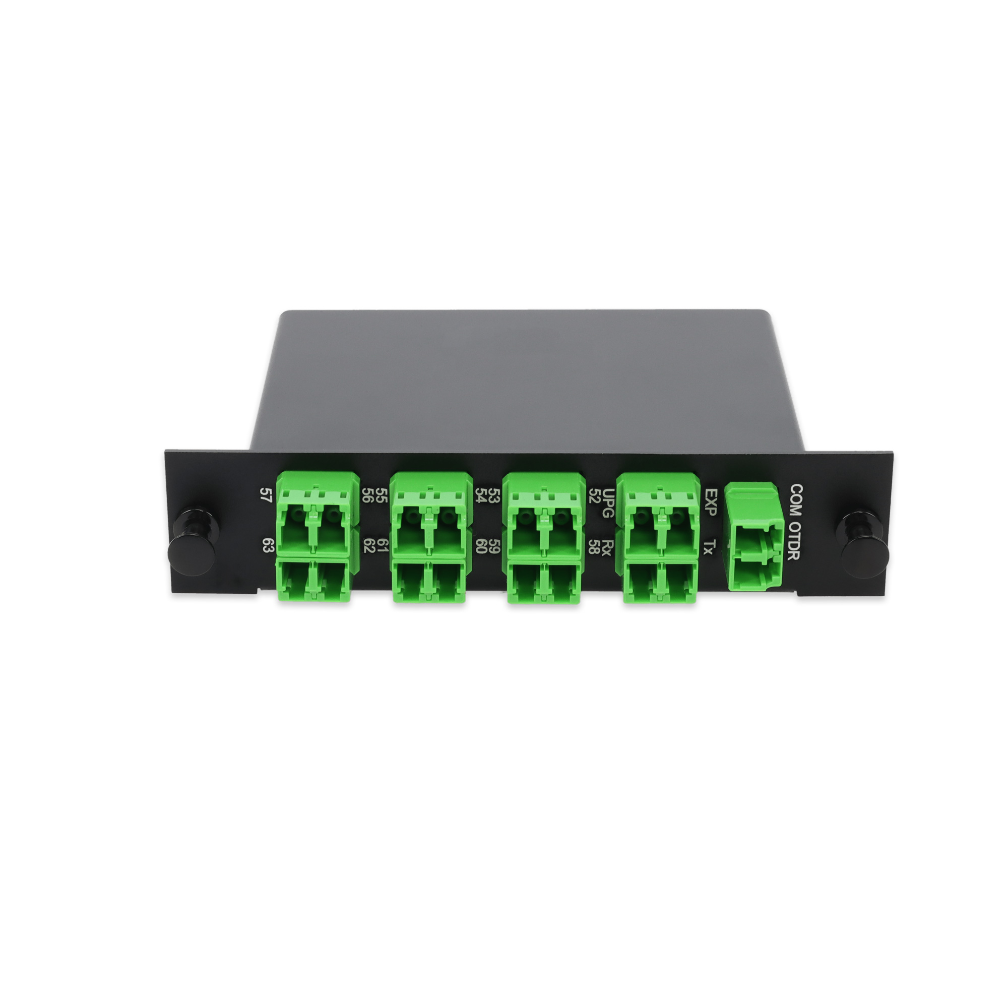 This 12-Channel DWDM Optical Passive Mux/Demux is engineered to maximize the capacity of existing fiber optic networks while minimizing the need for new fiber deployment. Operating with 100GHz channel spacing and supporting ITU channels C52-C63 (1625-1670nm range), this module enables the multiplexing or demultiplexing of four discrete wavelengths over a single-mode fiber. The unit includes OTDR(1625nm-1670nm ),Test TX/RX, Upgrade Port (UPG) and an Express Port (EXP) to ensure seamless scalability and future expansion. The UPG supports additional wavelengths within the 1525-1570nm range (excluding active channels), while the EXP accommodates O-band and L-band wavelengths (1260-1520nm and 1580-1620nm), providing a cost-effective path for network growth. Optimized for low signal attenuation, the DWDM channels deliver a maximum insertion loss of 3.4 dB, while the Upgrade and Express ports support up to 5 dB maximum insertion loss, ensuring efficient signal performance across both active and expansion paths. Equipped with LC/APC connectors and built in an industry-standard LGX form factor, this DWDM Mux/Demux delivers reliable performance and easy integration into existing fiber management systems.