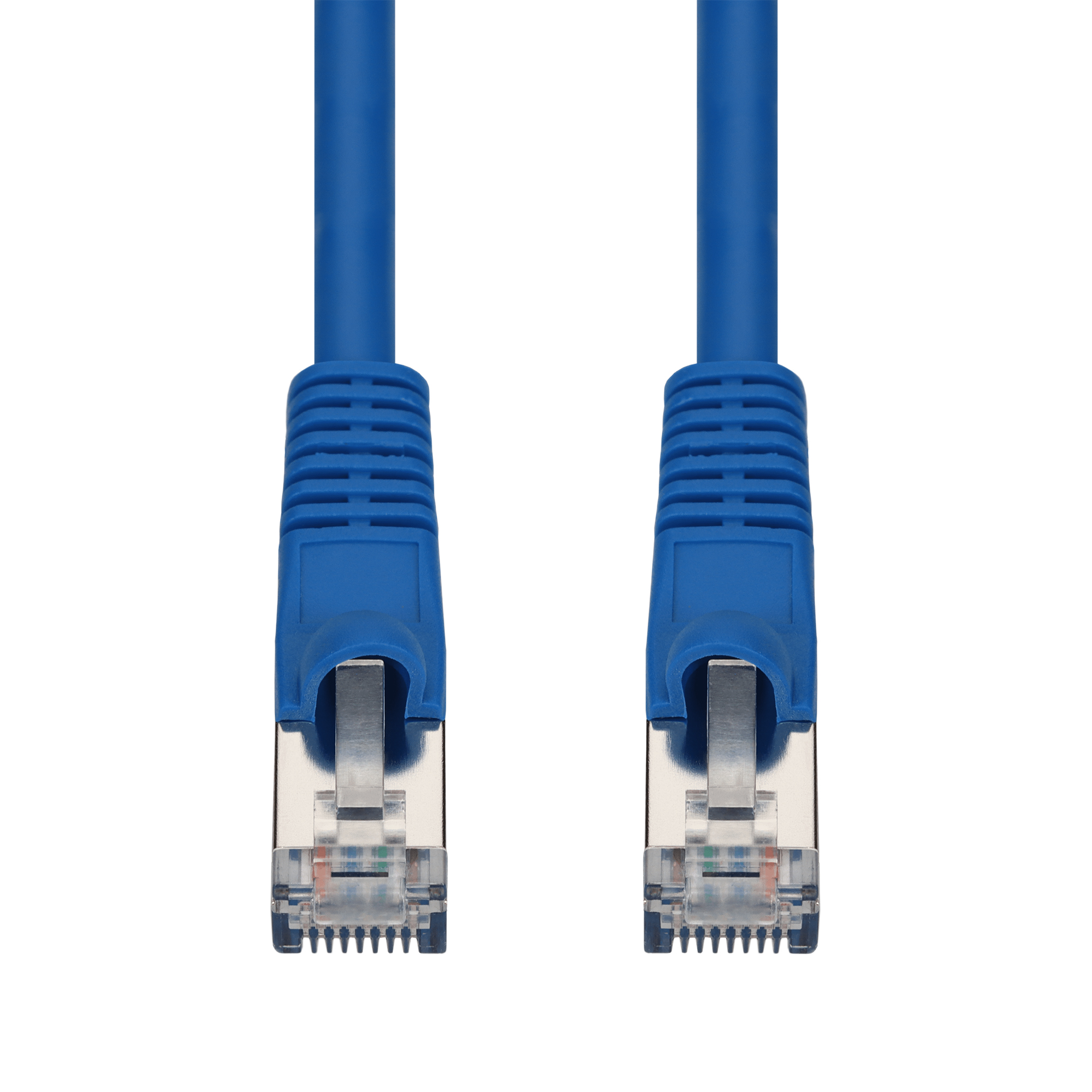 This is a 10-Pack 10ft Blue CAT 7 Shielded (S/FTP) PVC Ethernet Cable Snagless Bubble Boot RJ-45 M/M. CAT7 cables support data transfer speeds of up to 10 Gbps at frequencies up to 600 MHz. They feature improved shielding, reducing interference and ensuring a more stable connection. These cables support a maximum range of 100 meters (328 feet) and are ideal for professional networking environments that require high-speed and low-latency connections. S/FTP cables combine the features of both STP and FTP. Each twisted pair is individually wrapped in foil, and the entire bundle of pairs is enclosed in an additional braided or foil shield. This dual-layer shielding offers maximum protection against EMI and crosstalk, making these cables ideal for high-interference environments. PVC- CM is ideal for everyday home use, these cables offer reliable performance at an affordable price, perfect for connecting devices within a single floor. Our cables are PoE capable and TIA compliant, ensuring performance for all networking needs.