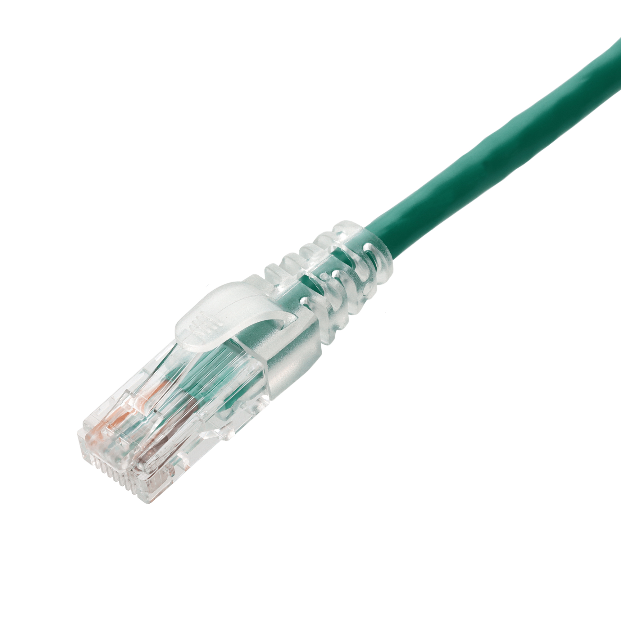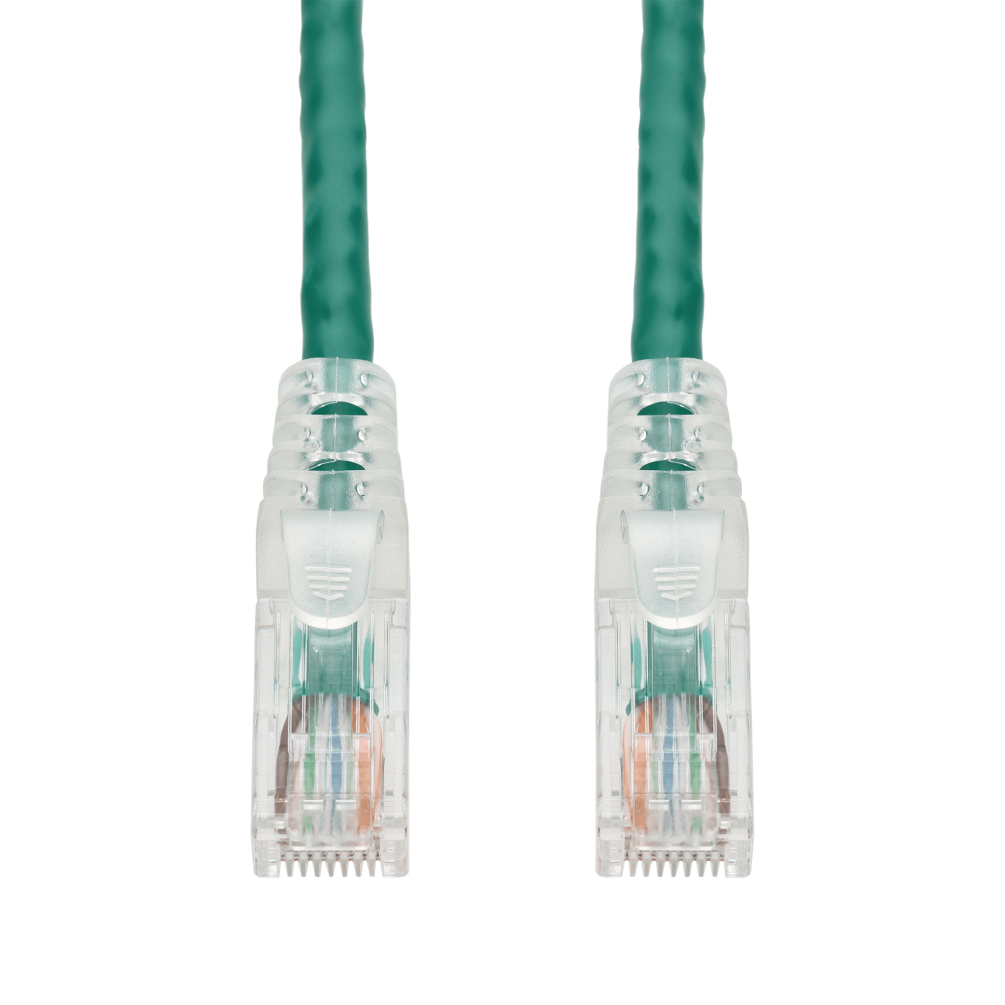 This is a 15ft Green CAT 6A PVC Ethernet Cable Snagless Easy Clear Boot TAA RJ-45 M/M. CAT6A cables provide blazing-fast internet speeds at up to 500 MHz, with a maximum speed of 10 Gbps (Gigabits per second) over the full range of 100 meters (328 feet). They are perfect for demanding home or office networks. UTP cables consist of pairs of insulated copper wires twisted together. Each pair is color-coded for easy identification. There is no additional shielding around the pairs, which makes these cables lightweight and flexible. The twisting helps to reduce electromagnetic interference (EMI) and crosstalk between pairs. PVC-CM is ideal for everyday home use, these cables offer reliable performance at an affordable price, perfect for connecting devices within a single floor. Our cables are PoE capable and TIA compliant, ensuring performance for all networking needs.