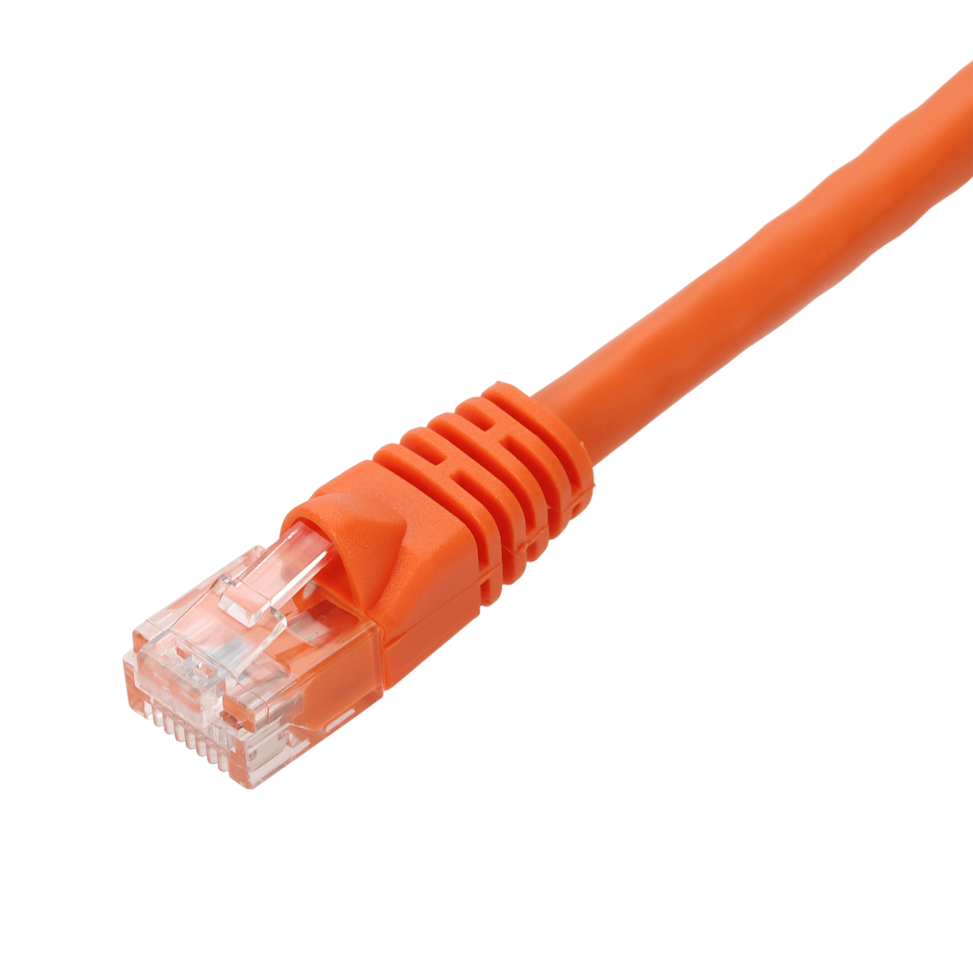 This is a 25ft Orange CAT 6A PVC Ethernet Cable Snagless Bubble Boot RJ-45 M/M. CAT6A cables provide blazing-fast internet speeds at up to 500 MHz, with a maximum speed of 10 Gbps (Gigabits per second) over the full range of 100 meters (328 feet). They are perfect for demanding home or office networks. UTP cables consist of pairs of insulated copper wires twisted together. Each pair is color-coded for easy identification. There is no additional shielding around the pairs, which makes these cables lightweight and flexible. The twisting helps to reduce electromagnetic interference (EMI) and crosstalk between pairs. PVC-CM is ideal for everyday home use, these cables offer reliable performance at an affordable price, perfect for connecting devices within a single floor. Our cables are PoE capable and TIA compliant, ensuring performance for all networking needs.