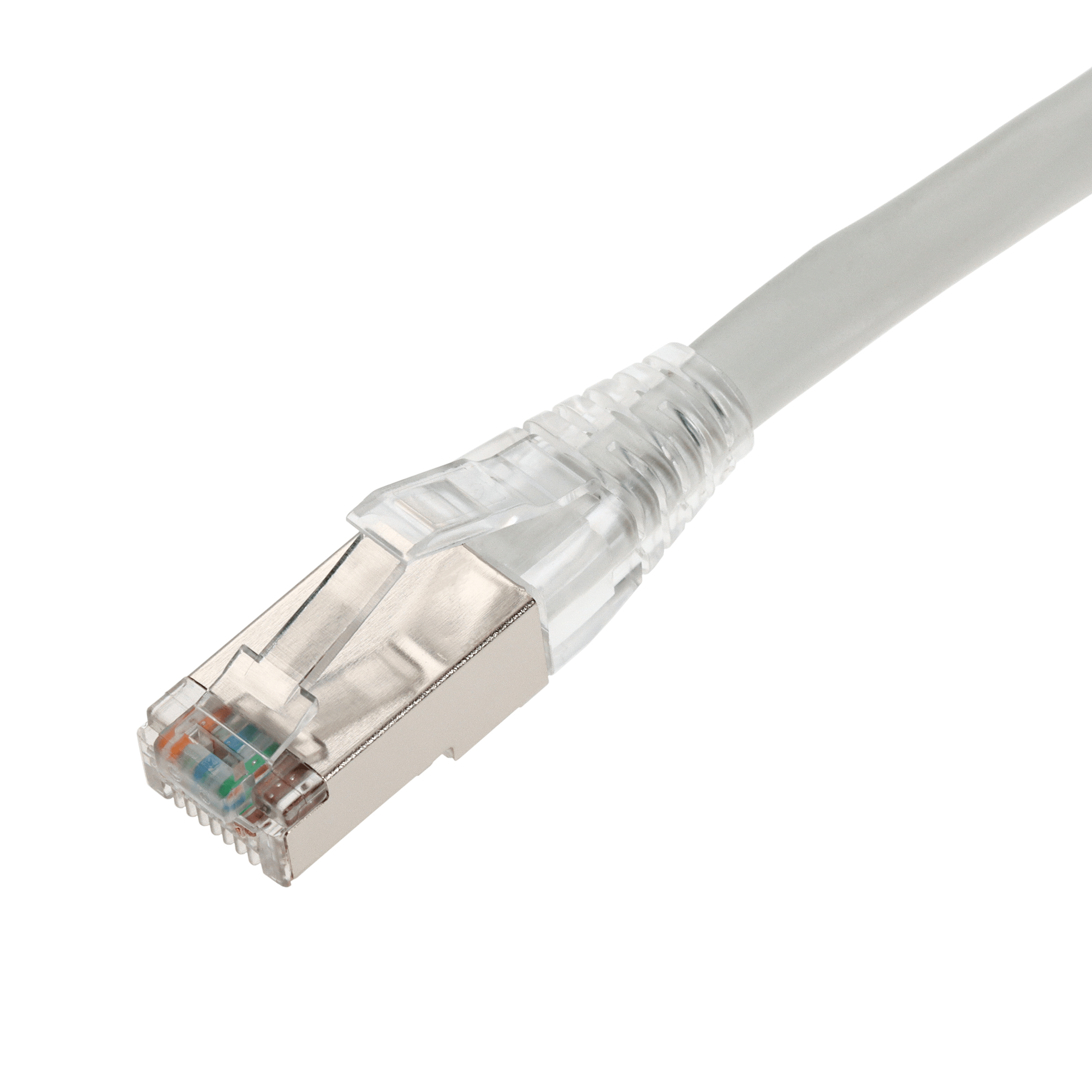 This is a 4.5ft White CAT 6A Shielded PVC Ethernet Cable Snagless Easy Clear Boot RJ-45 M/M. CAT6A cables provide blazing-fast internet speeds at up to 500 MHz, with a maximum speed of 10 Gbps (Gigabits per second) over the full range of 100 meters (328 feet). They are perfect for demanding home or office networks. STP cables have pairs of twisted copper wires, similar to UTP, but each pair is enclosed in a conductive shield, usually made of foil or braided wire. This shielding provides a barrier against external EMI and reduces crosstalk. The entire bundle of pairs is also wrapped in an additional shield, enhancing protection. PVC-CM is ideal for everyday home use, these cables offer reliable performance at an affordable price, perfect for connecting devices within a single floor. Our cables are PoE capable and TIA compliant, ensuring performance for all networking needs.