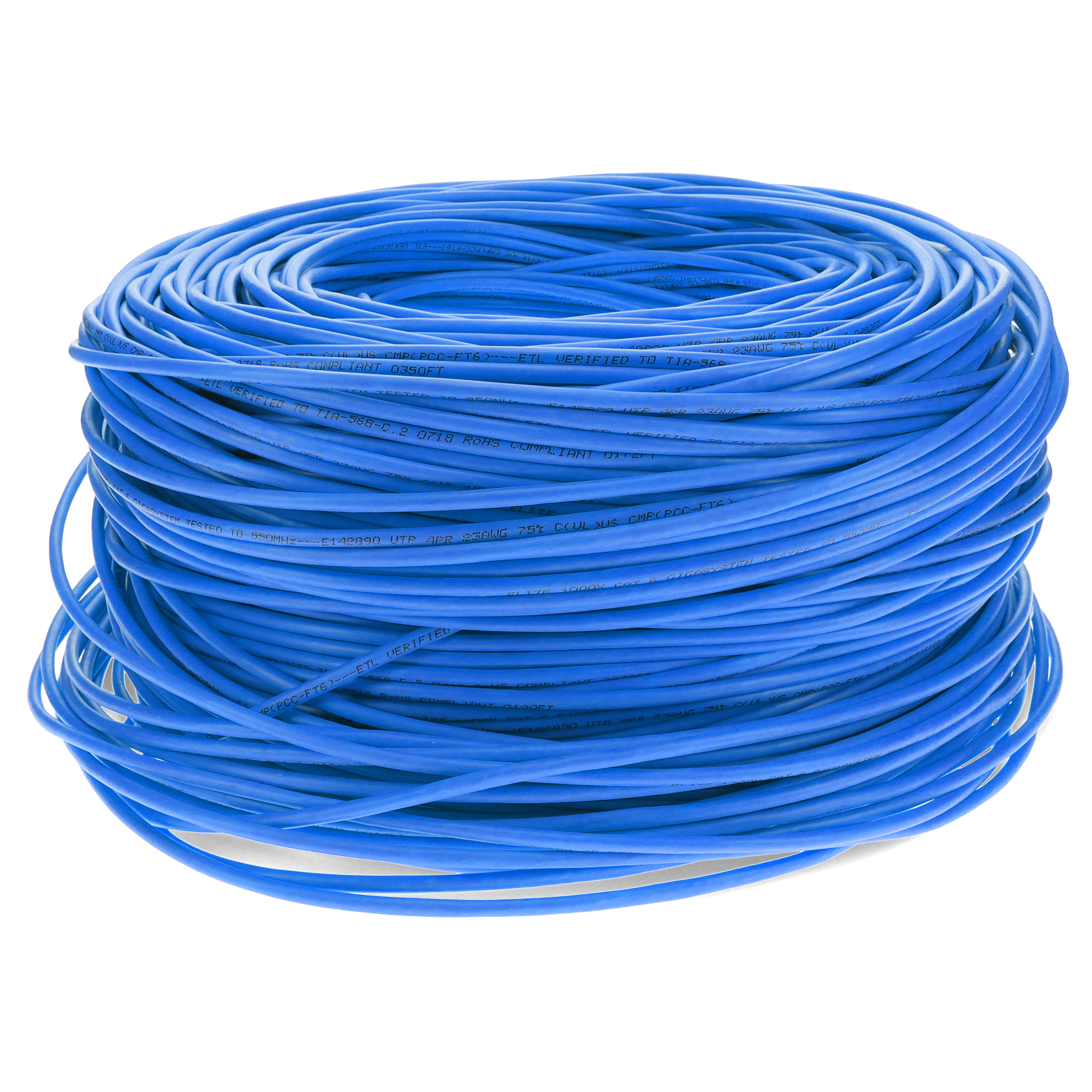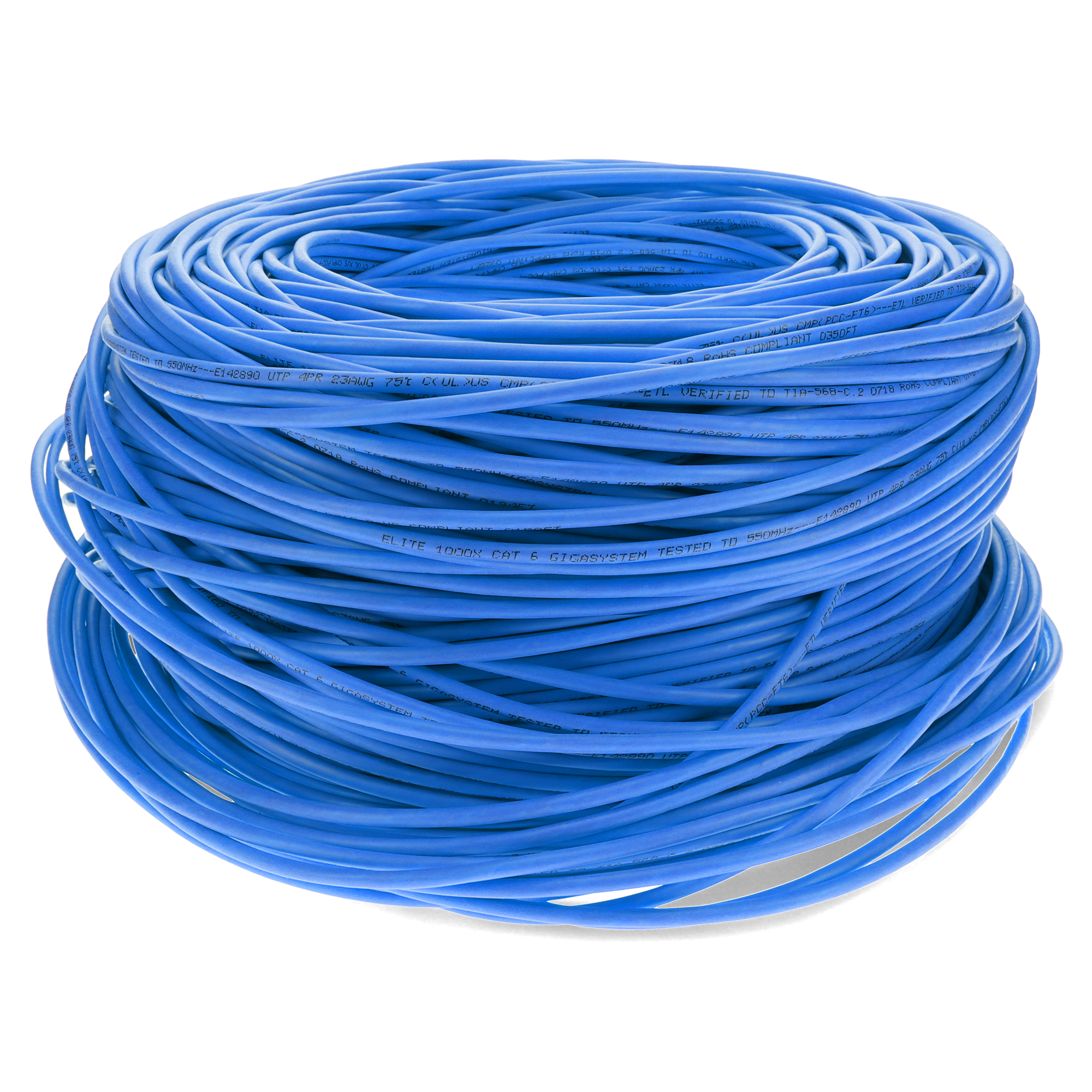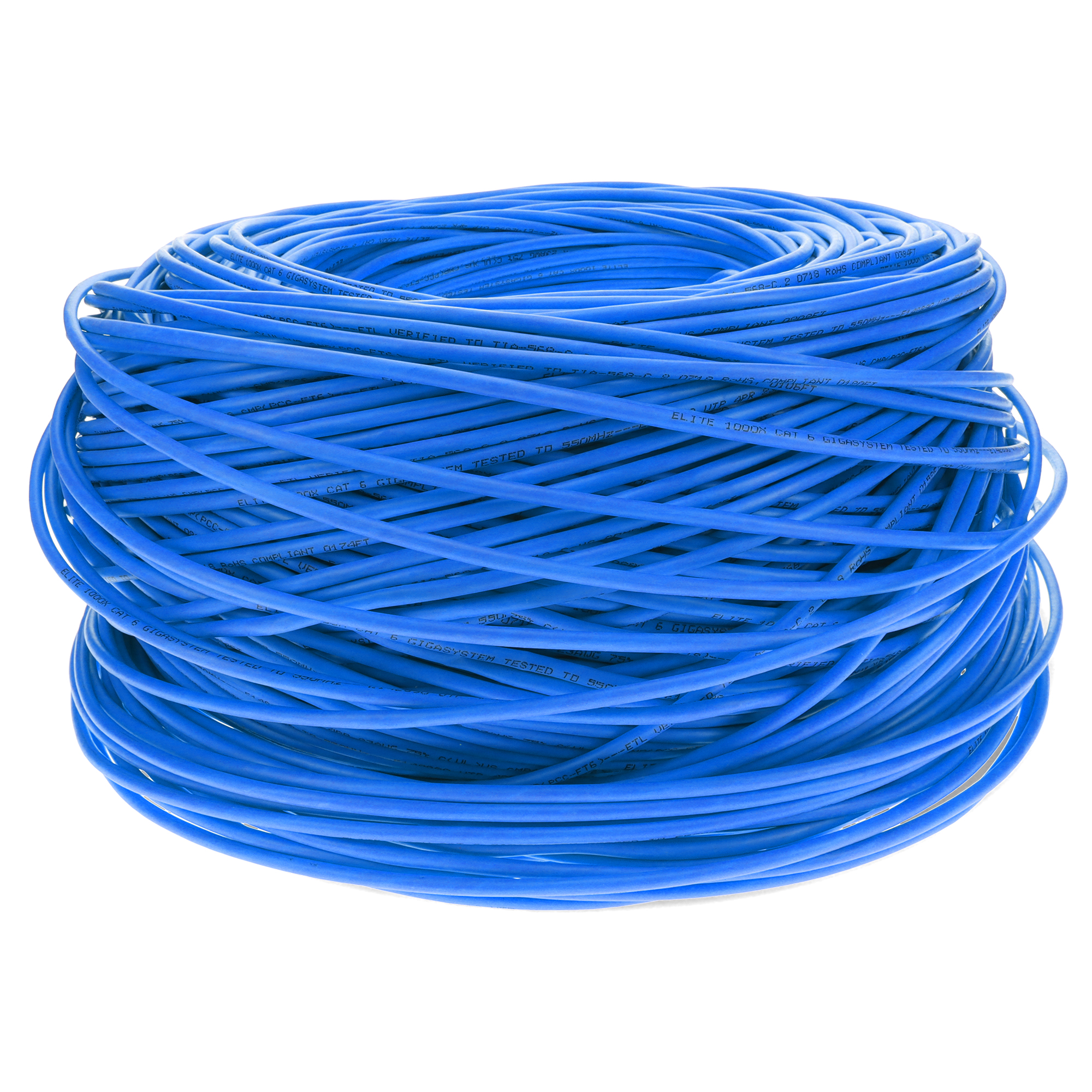 This is a 1000ft Non-Terminated Blue CAT 6 Shielded PVC Bulk Cable. CAT6 cables deliver ultra-fast internet speeds at up to 250 MHz, with a maximum speed of 10 Gbps (Gigabits per second) over shorter distances (up to 55 meters or 180 feet) and 1 Gbps over longer distances (up to 100 meters or 328 feet). They are ideal for high-performance home or office networks. STP cables have pairs of twisted copper wires, similar to UTP, but each pair is enclosed in a conductive shield, usually made of foil or braided wire. This shielding provides a barrier against external EMI and reduces crosstalk. The entire bundle of pairs is also wrapped in an additional shield, enhancing protection. PVC-CM is ideal for everyday home use, these cables offer reliable performance at an affordable price, perfect for connecting devices within a single floor. Our cables are PoE capable and TIA compliant, ensuring performance for all networking needs.
