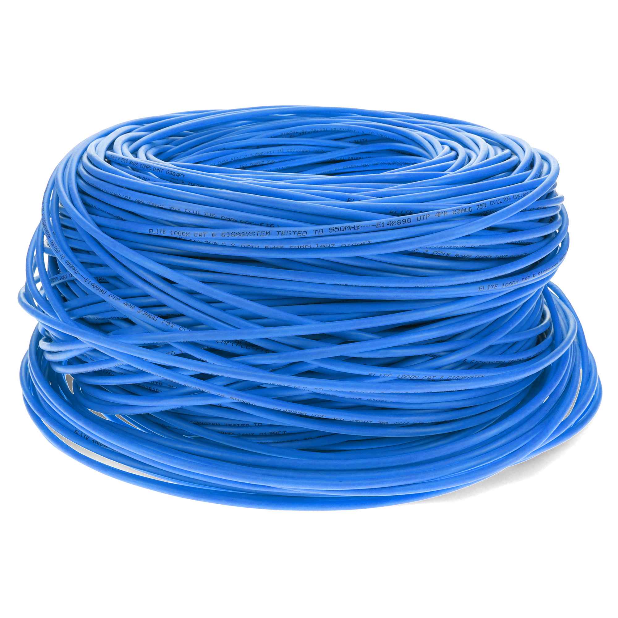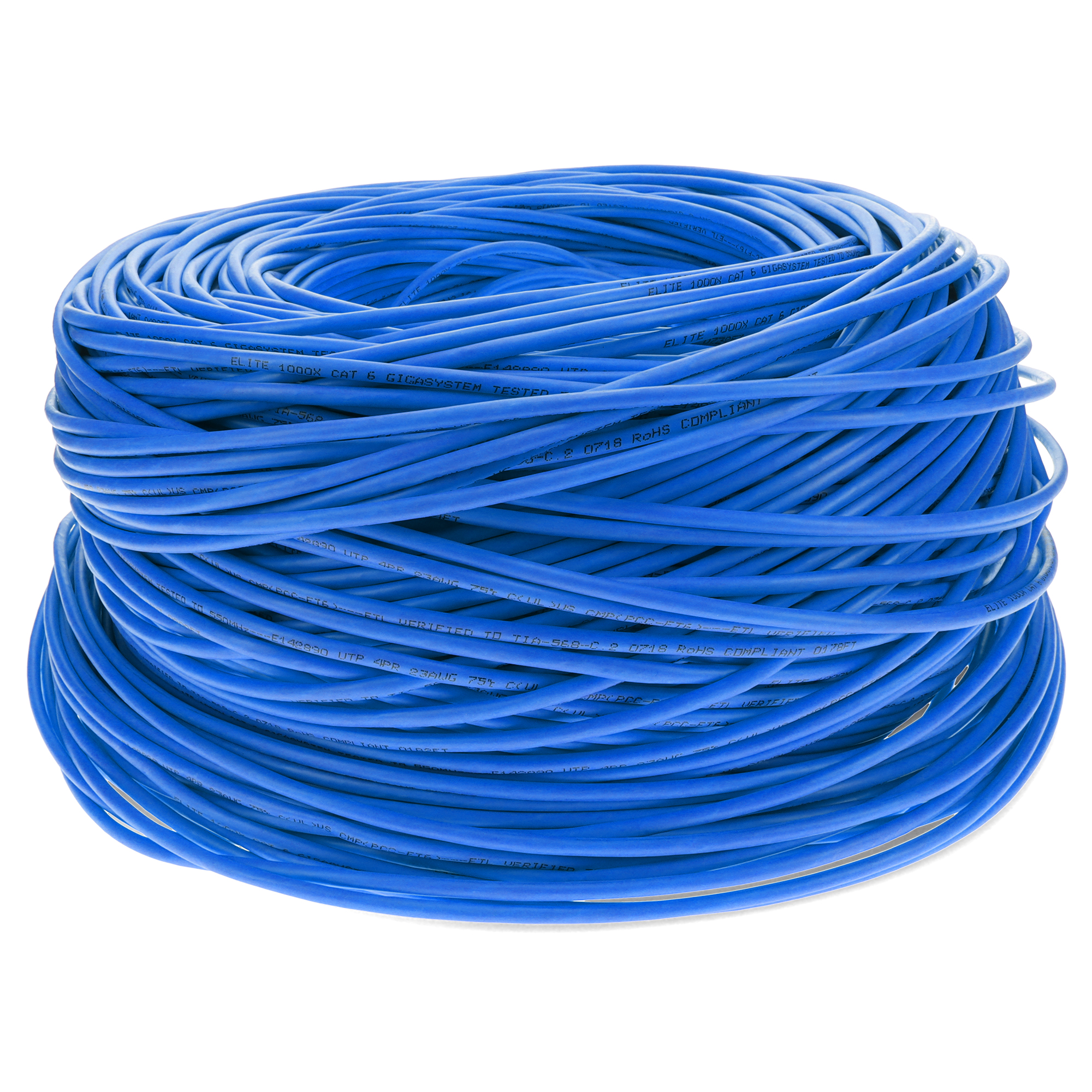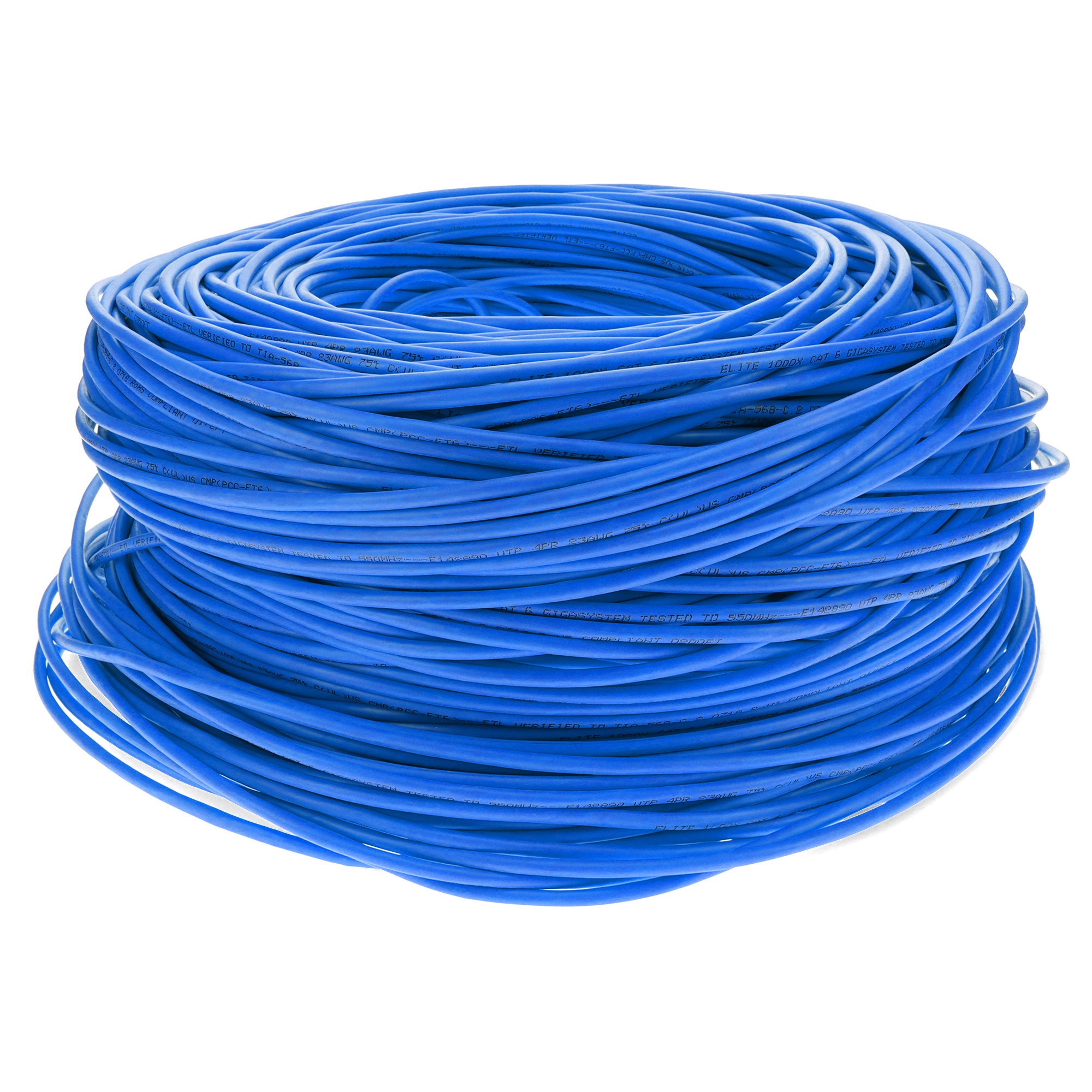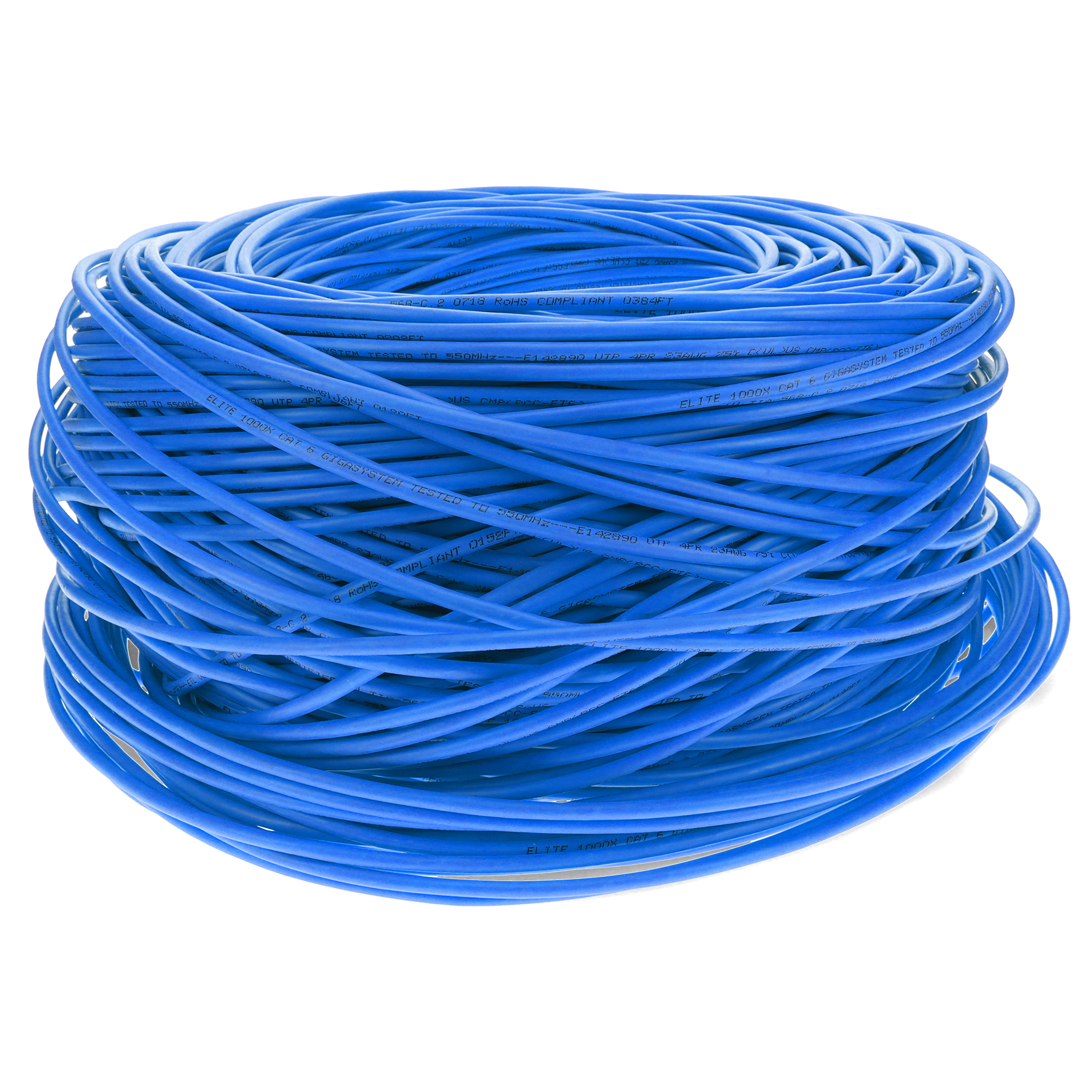 This is a 1000ft Non-Terminated Blue CAT 6 Shielded PVC Bulk Cable. CAT6 cables deliver ultra-fast internet speeds at up to 250 MHz, with a maximum speed of 10 Gbps (Gigabits per second) over shorter distances (up to 55 meters or 180 feet) and 1 Gbps over longer distances (up to 100 meters or 328 feet). They are ideal for high-performance home or office networks. STP cables have pairs of twisted copper wires, similar to UTP, but each pair is enclosed in a conductive shield, usually made of foil or braided wire. This shielding provides a barrier against external EMI and reduces crosstalk. The entire bundle of pairs is also wrapped in an additional shield, enhancing protection. PVC-CM is ideal for everyday home use, these cables offer reliable performance at an affordable price, perfect for connecting devices within a single floor. Our cables are PoE capable and TIA compliant, ensuring performance for all networking needs.