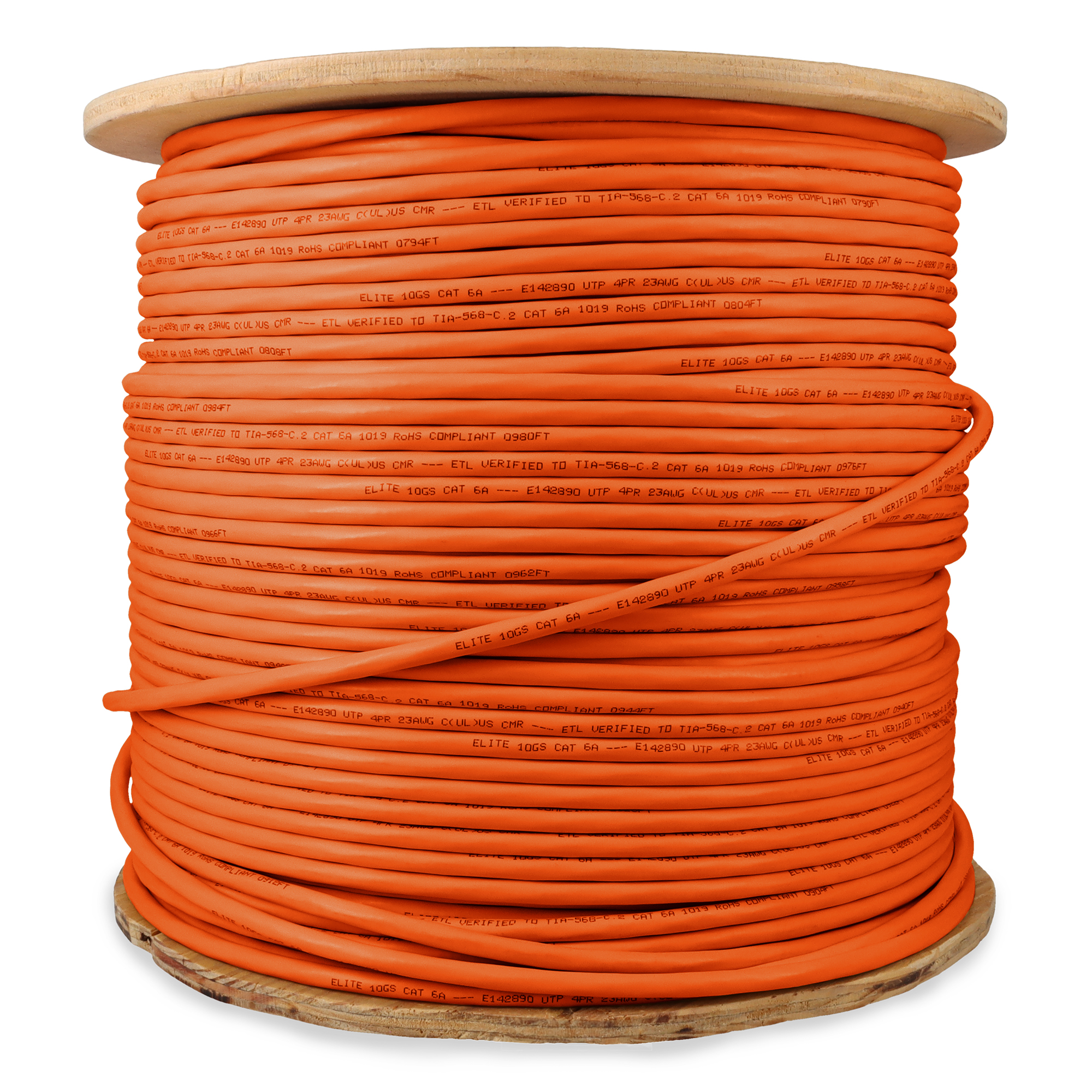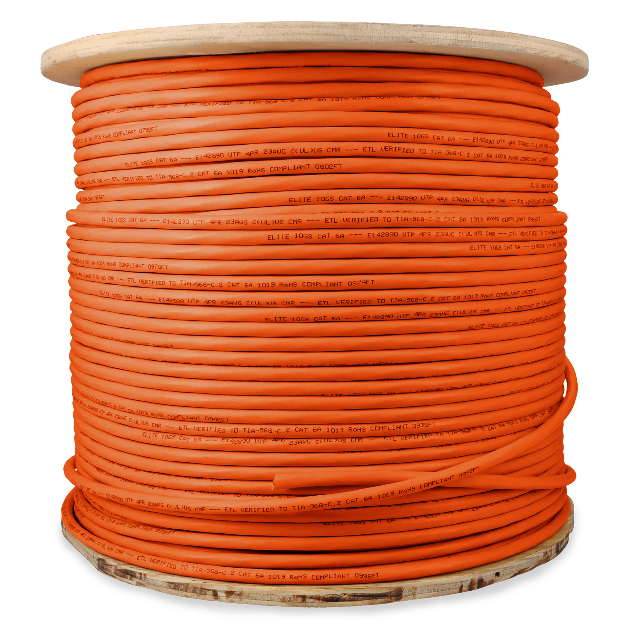 This is a 1000ft Non-Terminated Orange CAT 6A PVC Bulk Cable. CAT6A cables provide blazing-fast internet speeds at up to 500 MHz, with a maximum speed of 10 Gbps (Gigabits per second) over the full range of 100 meters (328 feet). They are perfect for demanding home or office networks. UTP cables consist of pairs of insulated copper wires twisted together. Each pair is color-coded for easy identification. There is no additional shielding around the pairs, which makes these cables lightweight and flexible. The twisting helps to reduce electromagnetic interference (EMI) and crosstalk between pairs. PVC-CM is ideal for everyday home use, these cables offer reliable performance at an affordable price, perfect for connecting devices within a single floor. Our cables are PoE capable and TIA compliant, ensuring performance for all networking needs.