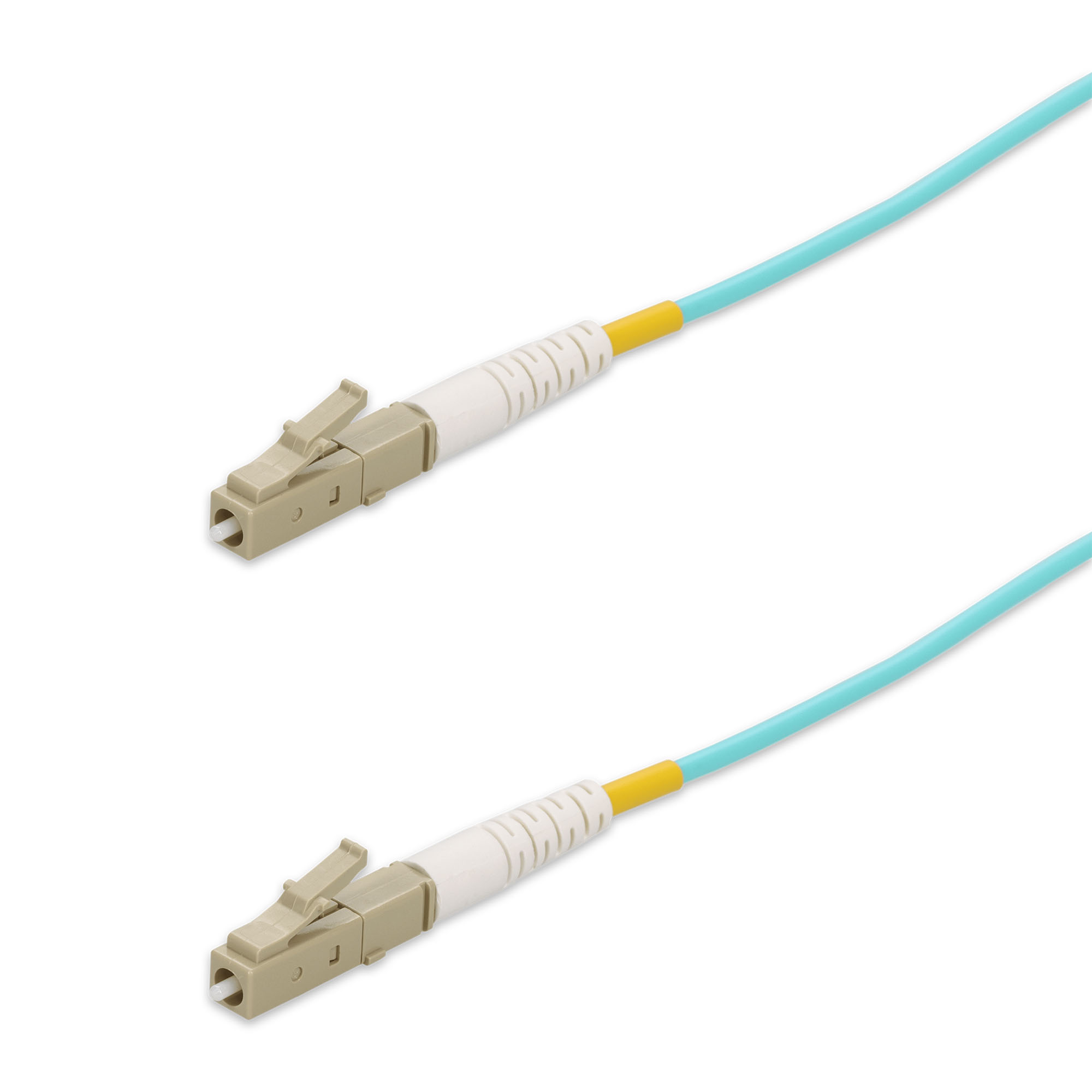 This is a 50m LC to LC Aqua OM4 Simplex LSZH Fiber Patch Cable. OM4 fiber optic cable is a high-performance multimode fiber optimized for high-speed data transmission, supporting up to 100G over distances of up to 150 meters. Ideal for data centers and large-scale network infrastructures, it delivers superior bandwidth and reliability for demanding business applications. LSZH (Low Smoke Zero Halogen) fiber cable jackets are designed to minimize toxic smoke and harmful emissions in the event of a fire, making them ideal for enclosed or high-traffic areas. These cables provide enhanced safety and environmental protection, making them a popular choice for businesses prioritizing workplace safety and eco-friendly infrastructure. The Standard Boot option provides reliable and straightforward connections for fiber cables, making it an economical choice for various networking applications. Ideal for businesses that require dependable performance without the complexity, this option ensures consistent data transmission in everyday network setups. Our cables are TIA compliant, ensuring performance for all networking needs.