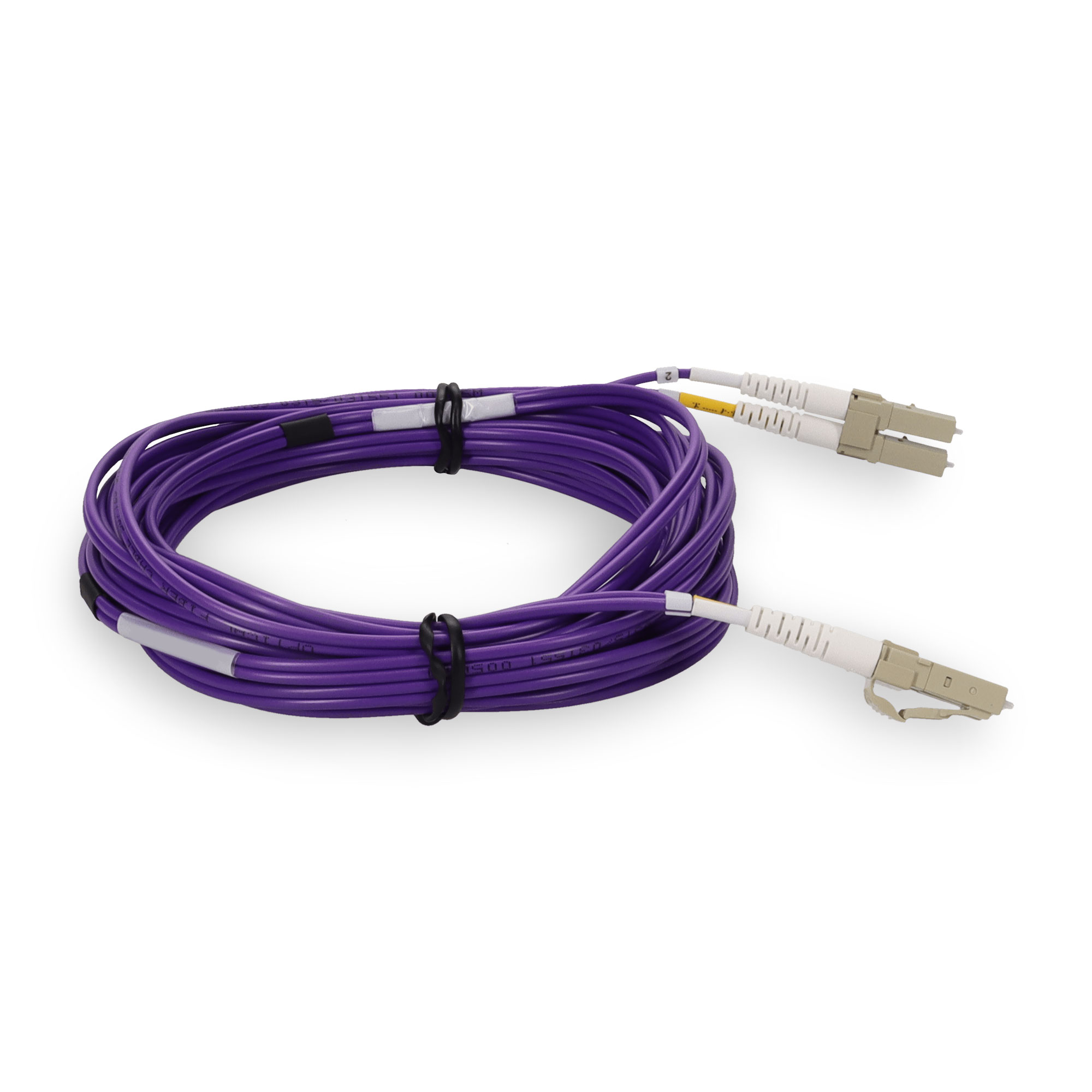 This is a 3m LC to LC Erika Violet OM4 Duplex Microboot, Snagless OFNR (Riser-Rated) Fiber Patch Cable with Serialized Labeled Ends. OM4 fiber optic cable is a high-performance multimode fiber optimized for high-speed data transmission, supporting up to 100G over distances of up to 150 meters. Ideal for data centers and large-scale network infrastructures, it delivers superior bandwidth and reliability for demanding business applications. OFNR riser fiber cable jackets are designed for vertical installations in building risers, providing fire-resistant protection to ensure safe data transmission between floors. These cables meet strict safety standards, making them ideal for businesses that need reliable, in-building network infrastructure without the risk of fire spreading through conduits. The Micro boot connector option features an ultra-compact design, reducing the overall footprint of the connector for easier handling in tight spaces or high-density installations. This solution is perfect for businesses needing streamlined fiber connections while maximizing space in racks and panels. Our cables are TIA compliant, ensuring performance for all networking needs.