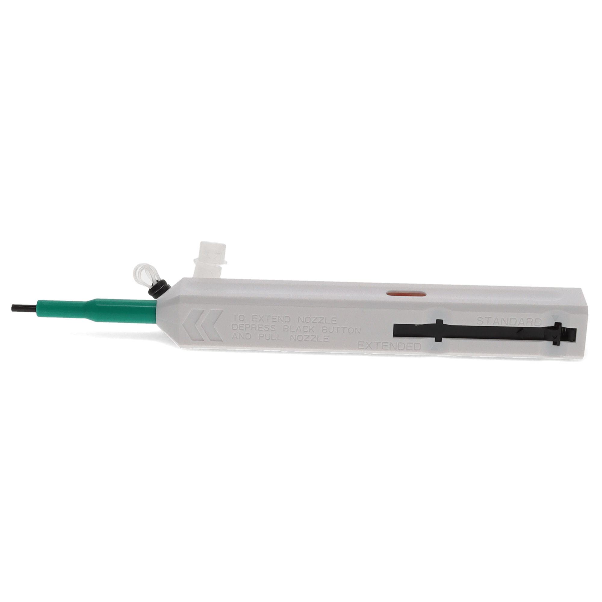 Optical fiber one-click cleaner with ESD-safe soft tip agitator for SC, ST, FC fiber optic adapters 2.5mm adapters.