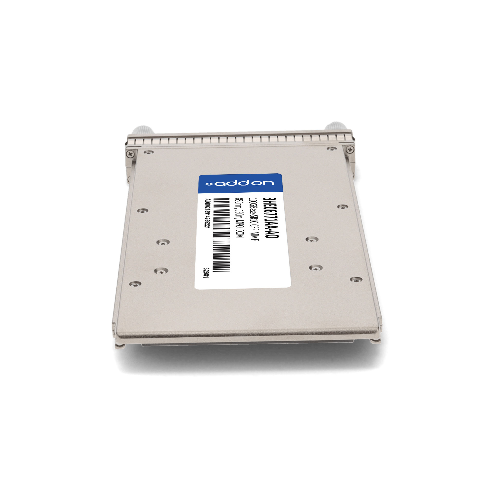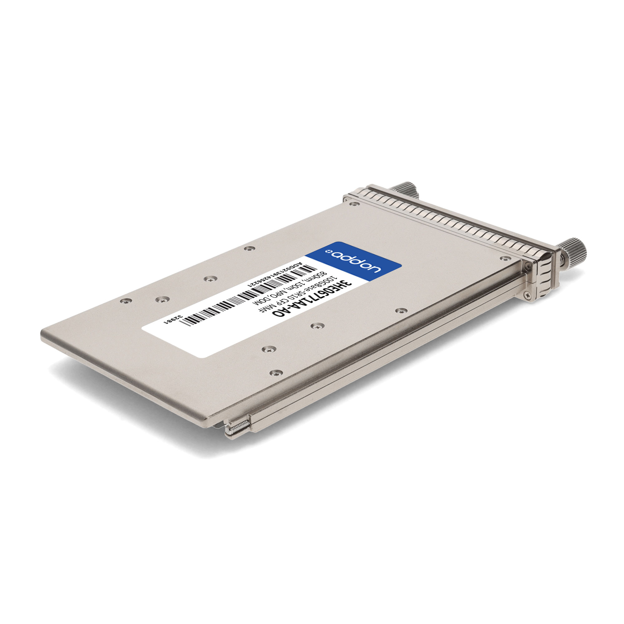 This Alcatel-Lucent Nokia® 3HE06771AA compatible CFP transceiver provides 100GBase-SR10 throughput up to 150m over multi-mode fiber (MMF) using a wavelength of 850nm via an MPO connector. Our transceiver is built to meet or exceed OEM specifications and is guaranteed to be 100% compatible with Alcatel-Lucent Nokia®. It has been programmed, uniquely serialized, and tested for data-traffic and application to ensure that it will initialize and perform identically. All of our transceivers comply with Multi-Source Agreement (MSA) standards to provide seamless network integration. Additional product features include Digital Optical Monitoring (DOM) support which allows access to real-time operating parameters. This transceiver is Trade Agreements Act (TAA) compliant. We stand behind the quality of our products and proudly offer a limited lifetime warranty.