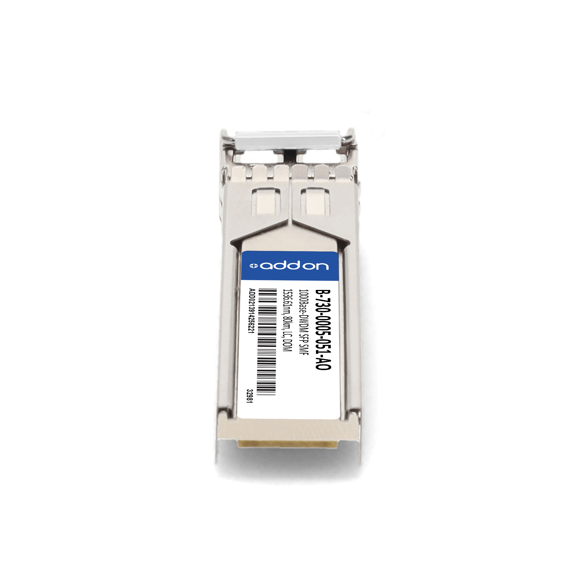 This Ciena® B-730-0005-051 compatible SFP transceiver provides 1000Base-DWDM throughput up to 80km over single-mode fiber (SMF) using a wavelength of 1536.61nm via an LC connector. It can operate at temperatures between 0 and 70C. Our transceiver is built to meet or exceed OEM specifications and is guaranteed to be 100% compatible with Ciena®. It has been programmed, uniquely serialized, and tested for data-traffic and application to ensure that it will initialize and perform identically. All of our transceivers comply with Multi-Source Agreement (MSA) standards to provide seamless network integration. Additional product features include Digital Optical Monitoring (DOM) support which allows access to real-time operating parameters. This transceiver is Trade Agreements Act (TAA) compliant. We stand behind the quality of our products and proudly offer a limited lifetime warranty.