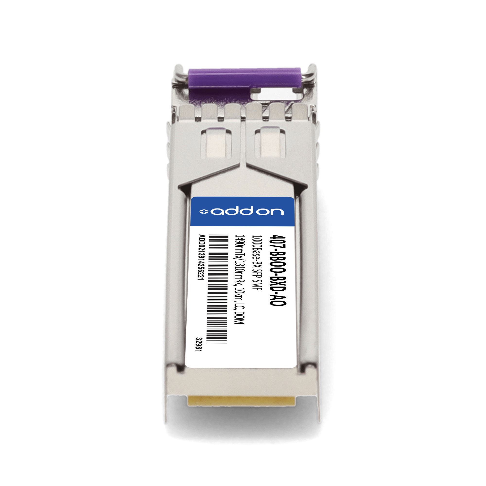 This Dell® 407-BBOO-BXD compatible SFP transceiver provides 1000Base-BX throughput up to 10km over single-mode fiber (SMF) using a wavelength of 1490nmTx/1310nmRx via an LC connector. This bidirectional unit must be used with another transceiver or network appliance of complementing wavelengths. It can operate at temperatures between 0 and 70C. Our transceiver is built to meet or exceed OEM specifications and is guaranteed to be 100% compatible with Dell®. It has been programmed, uniquely serialized, and tested for data-traffic and application to ensure that it will initialize and perform identically. All of our transceivers comply with Multi-Source Agreement (MSA) standards to provide seamless network integration. Additional product features include Digital Optical Monitoring (DOM) support which allows access to real-time operating parameters. We stand behind the quality of our products and proudly offer a limited lifetime warranty.
