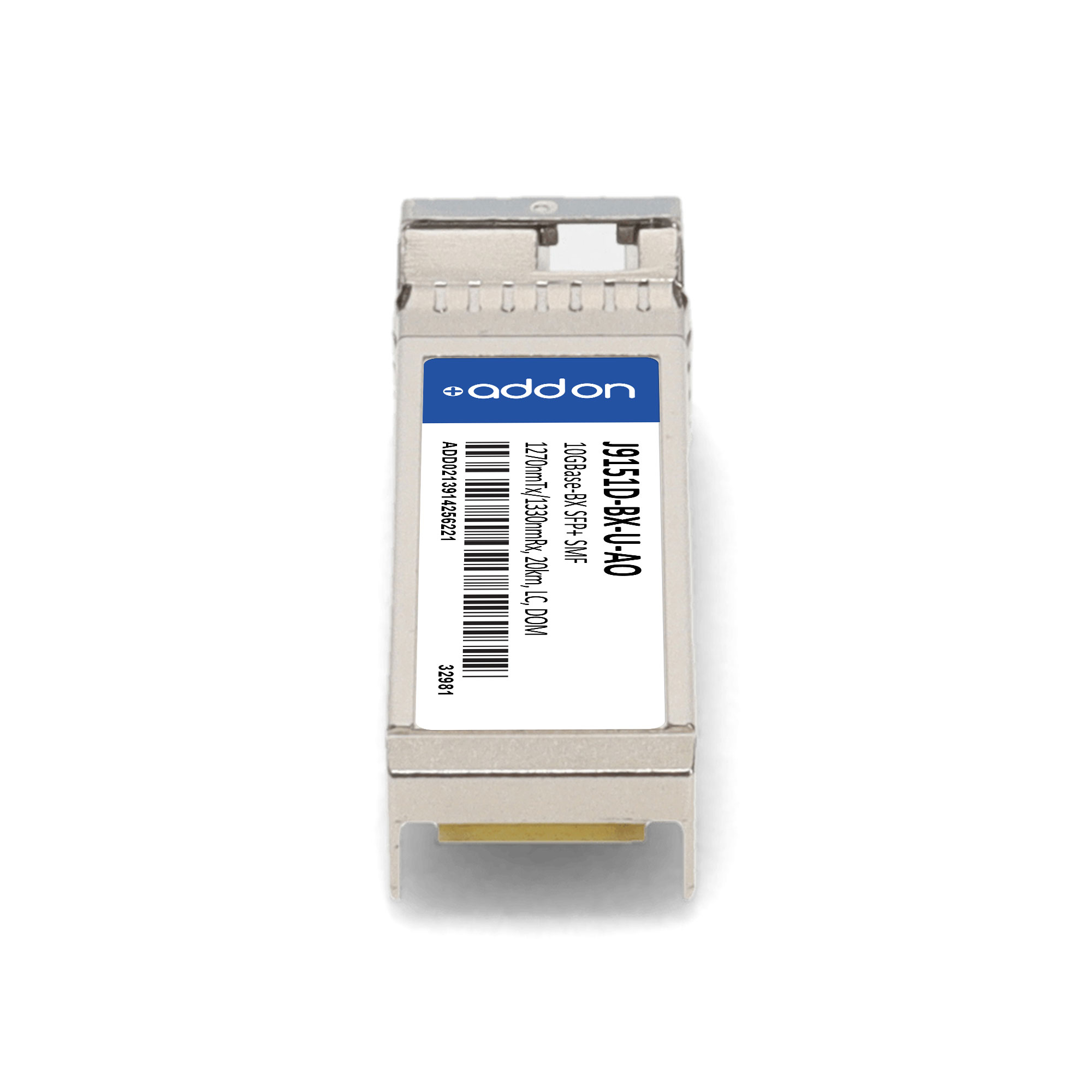 This HP® compatible SFP+ transceiver provides 10GBase-BX throughput up to 20km over single-mode fiber (SMF) using a wavelength of 1270nmTx/1330nmRx via an LC connector. This bidirectional unit must be used with another transceiver or network appliance of complementing wavelengths. It is guaranteed to be 100% compatible with the equivalent HP® transceiver. This easy to install, hot swappable transceiver has been programmed, uniquely serialized and data-traffic and application tested to ensure that it will initialize and perform identically. Digital optical monitoring (DOM) support is also present to allow access to real-time operating parameters. This transceiver is Trade Agreements Act (TAA) compliant. We stand behind the quality of our products and proudly offer a limited lifetime warranty.