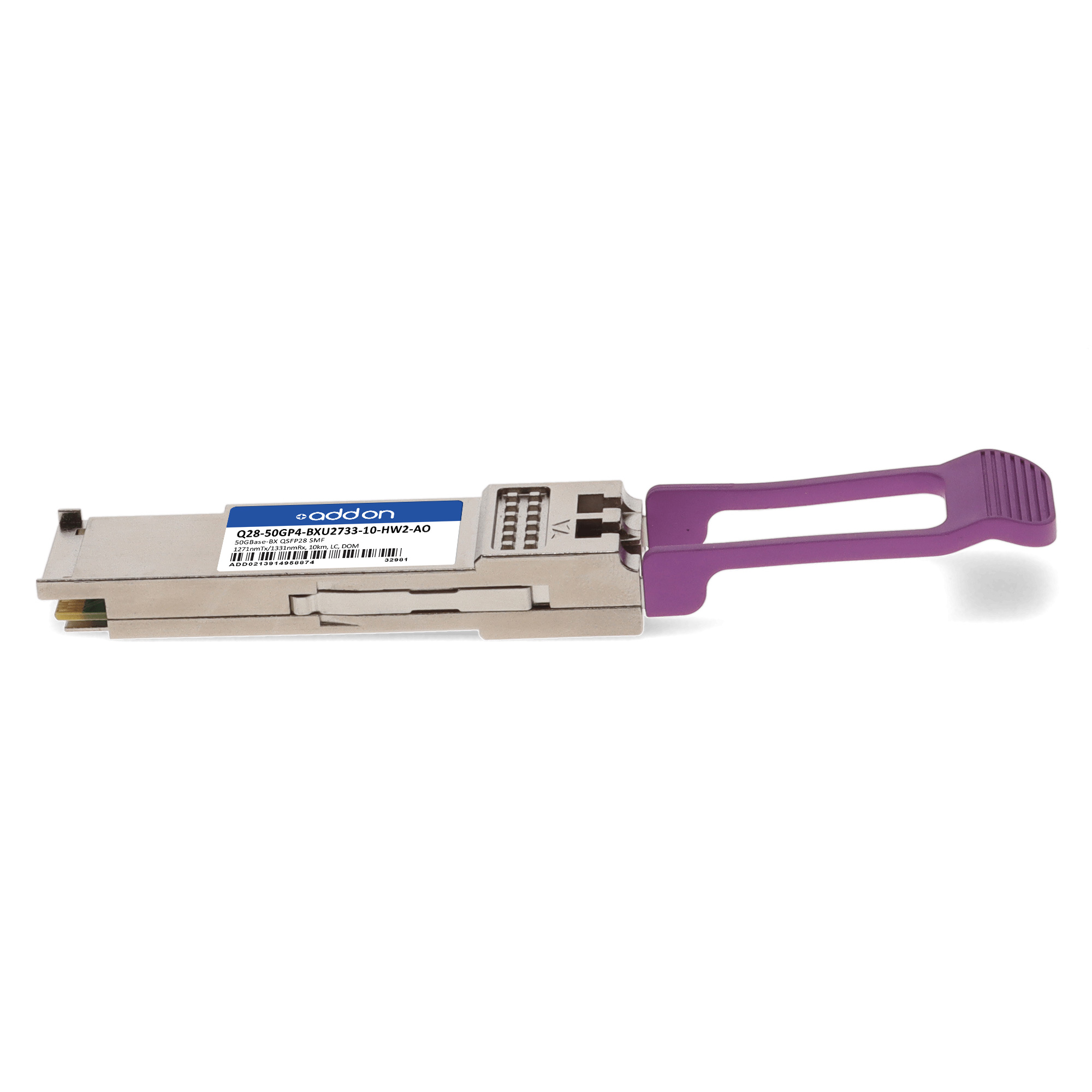 Huawei® Compatible 50GBase-BX QSFP28 Single Lambda Transceiver (SMF, 1271nmTx/1331nmRx, 10km, LC, DOM, with FEC)