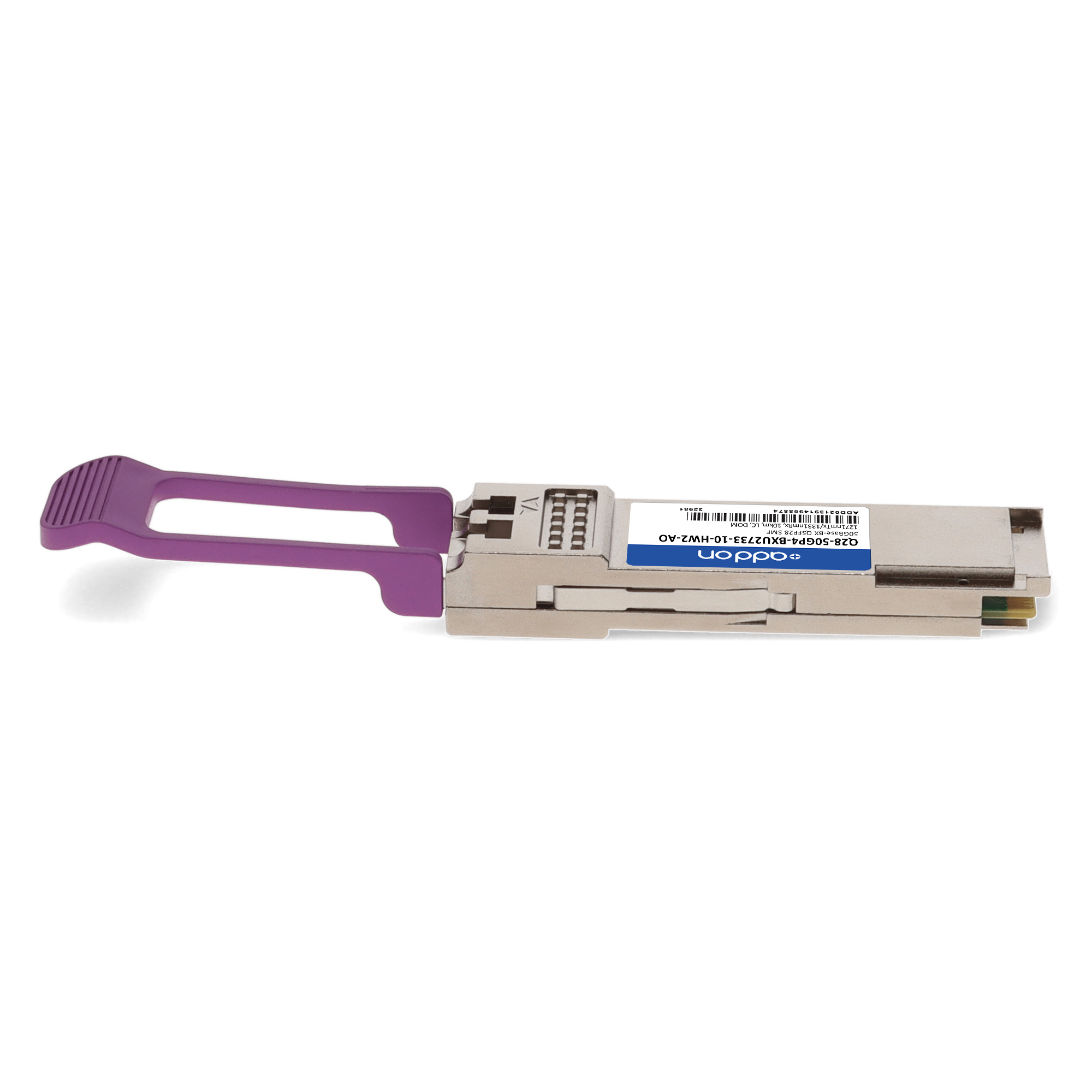 This MSA compliant QSFP28 transceiver provides 50GBase-BX throughput up to 10km over single-mode fiber (SMF) PAM4 using a wavelength of 1271nmTx/1331nmRx via an LC connector. This bidirectional unit must be used with another transceiver or network appliance of complementing wavelengths. It can operate at temperatures between 0 and 70C. All of our transceivers are built to comply with Multi-Source Agreement (MSA) standards and are uniquely serialized and tested for data-traffic and application to ensure seamless network integration. Additional product features include Digital Optical Monitoring (DOM) support which allows access to real-time operating parameters. This transceiver is Trade Agreements Act (TAA) compliant. We stand behind the quality of our products and proudly offer a limited lifetime warranty.