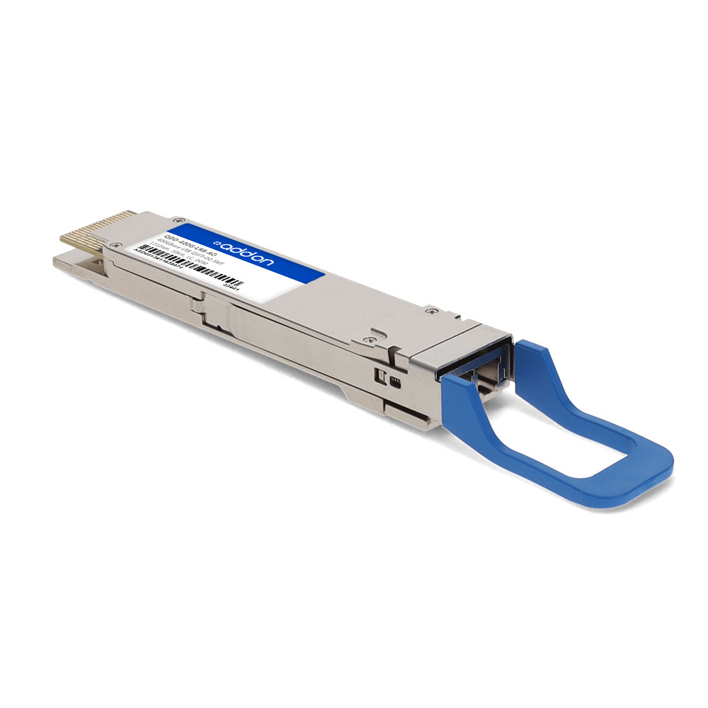 This Juniper Networks® QDD-400G-LR8 compatible QSFP-DD transceiver provides 400GBase-LR8 throughput up to 10km over single-mode fiber (SMF) PAM4 using a wavelength of 1270nm to 1330nm via an LC connector. It can operate at temperatures between 0 and 70C. Our transceiver is built to meet or exceed OEM specifications and is guaranteed to be 100% compatible with Juniper Networks®. It has been programmed, uniquely serialized, and tested for data-traffic and application to ensure that it will initialize and perform identically. All of our transceivers comply with Multi-Source Agreement (MSA) standards to provide seamless network integration. Additional product features include Digital Optical Monitoring (DOM) support which allows access to real-time operating parameters. This transceiver is Trade Agreements Act (TAA) compliant. We stand behind the quality of our products and proudly offer a limited lifetime warranty.