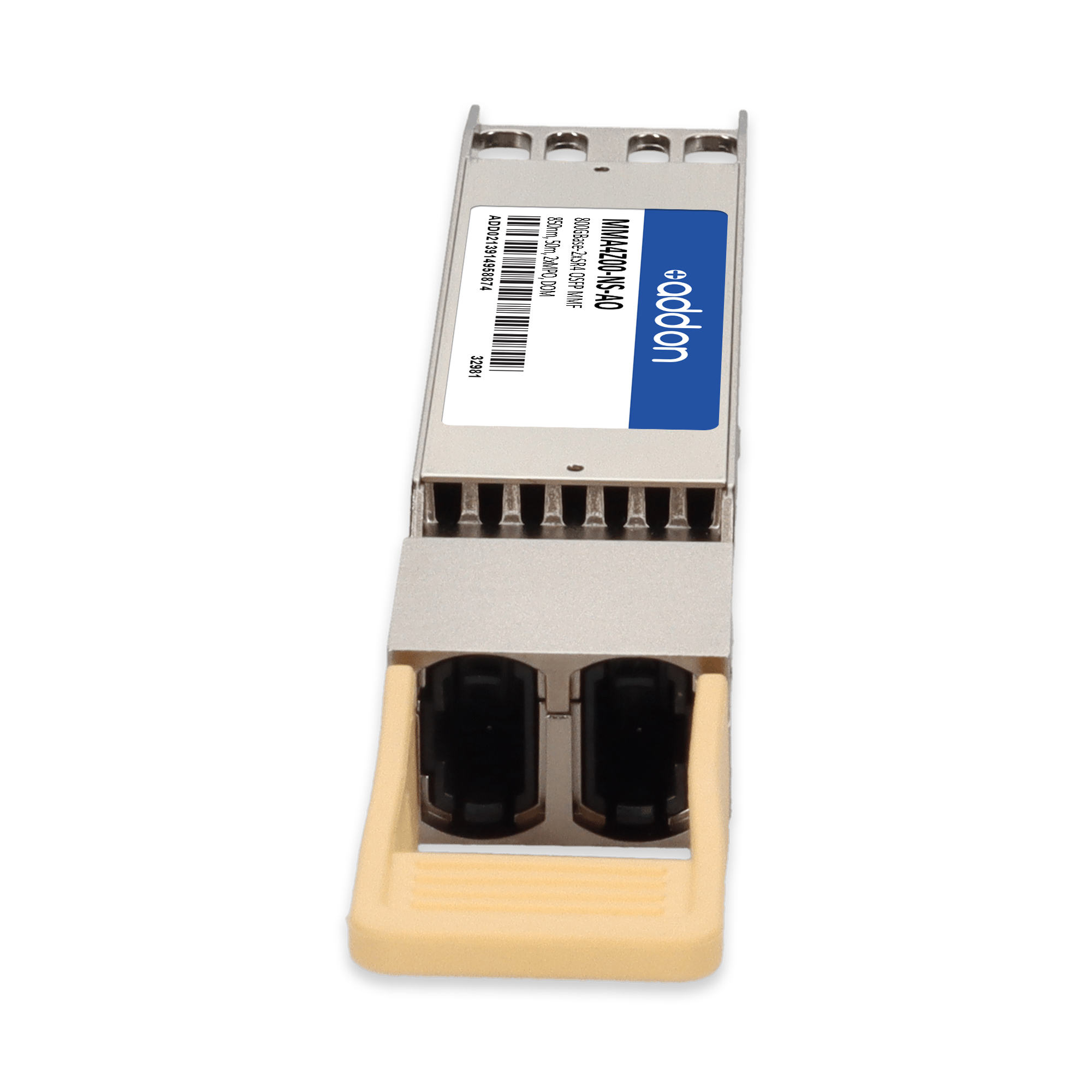 This Mellanox® MMA4Z00-NS compatible OSFP transceiver provides 800GBase-2xSR4 throughput up to 50m over multi-mode fiber (MMF) PAM4 using a wavelength of 850nm via a 2xMPO connector. It can operate at temperatures between 0 and 70C. Our transceiver is built to meet or exceed OEM specifications and is guaranteed to be 100% compatible with Mellanox®. It has been programmed, uniquely serialized, and tested for data-traffic and application to ensure that it will initialize and perform identically. All of our transceivers comply with Multi-Source Agreement (MSA) standards to provide seamless network integration. Additional product features include Digital Optical Monitoring (DOM) support which allows access to real-time operating parameters. This transceiver is Trade Agreements Act (TAA) compliant. We stand behind the quality of our products and proudly offer a limited lifetime warranty.