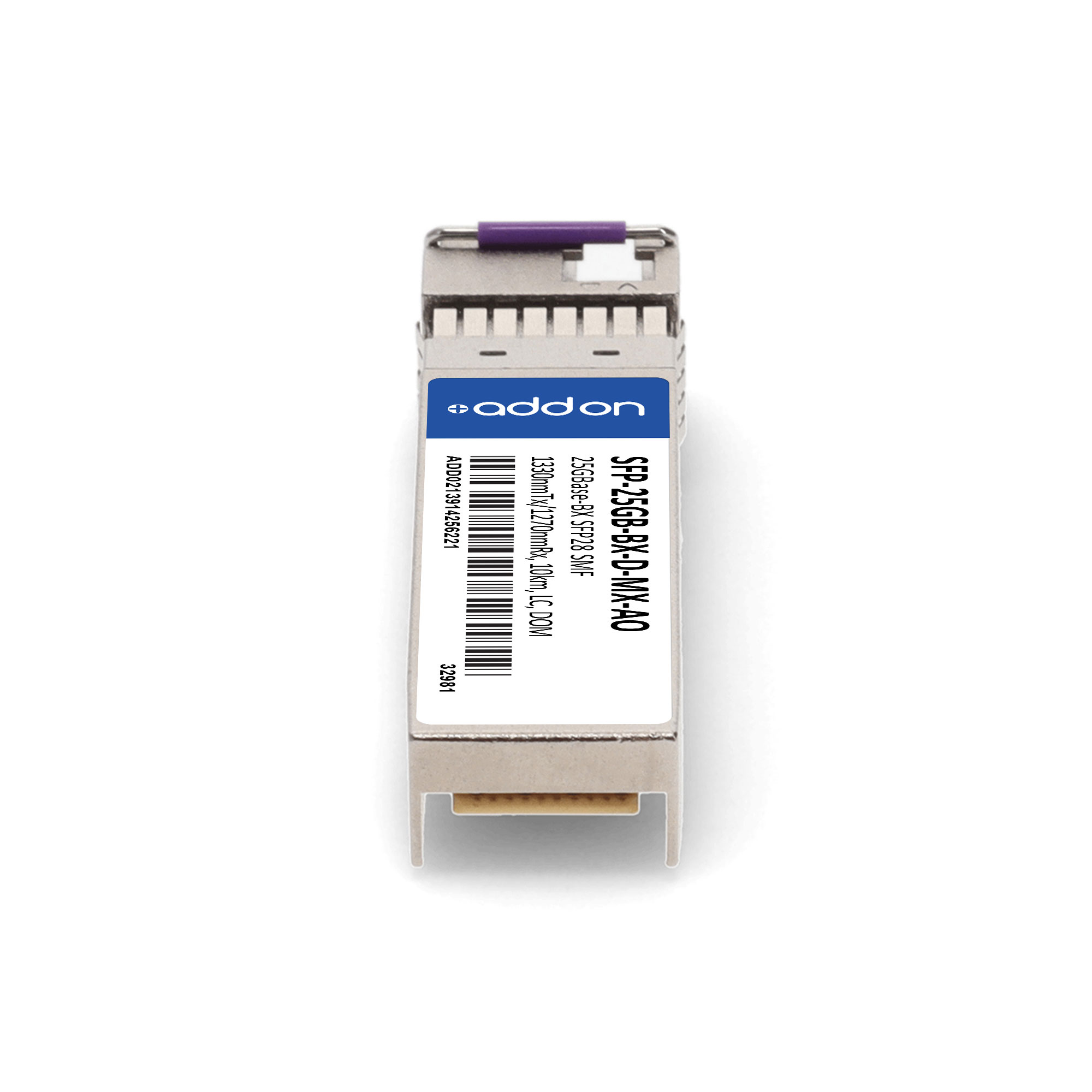 This Mellanox® compatible SFP28 transceiver provides 25GBase-BX throughput up to 10km over single-mode fiber (SMF) using a wavelength of 1330nmTx/1270nmRx via an LC connector. This bidirectional unit must be used with another transceiver or network appliance of complementing wavelengths. It is guaranteed to be 100% compatible with the equivalent Mellanox® transceiver. This easy to install, hot swappable transceiver has been programmed, uniquely serialized and data-traffic and application tested to ensure that it will initialize and perform identically. Digital optical monitoring (DOM) support is also present to allow access to real-time operating parameters. This transceiver is Trade Agreements Act (TAA) compliant. We stand behind the quality of our products and proudly offer a limited lifetime warranty.