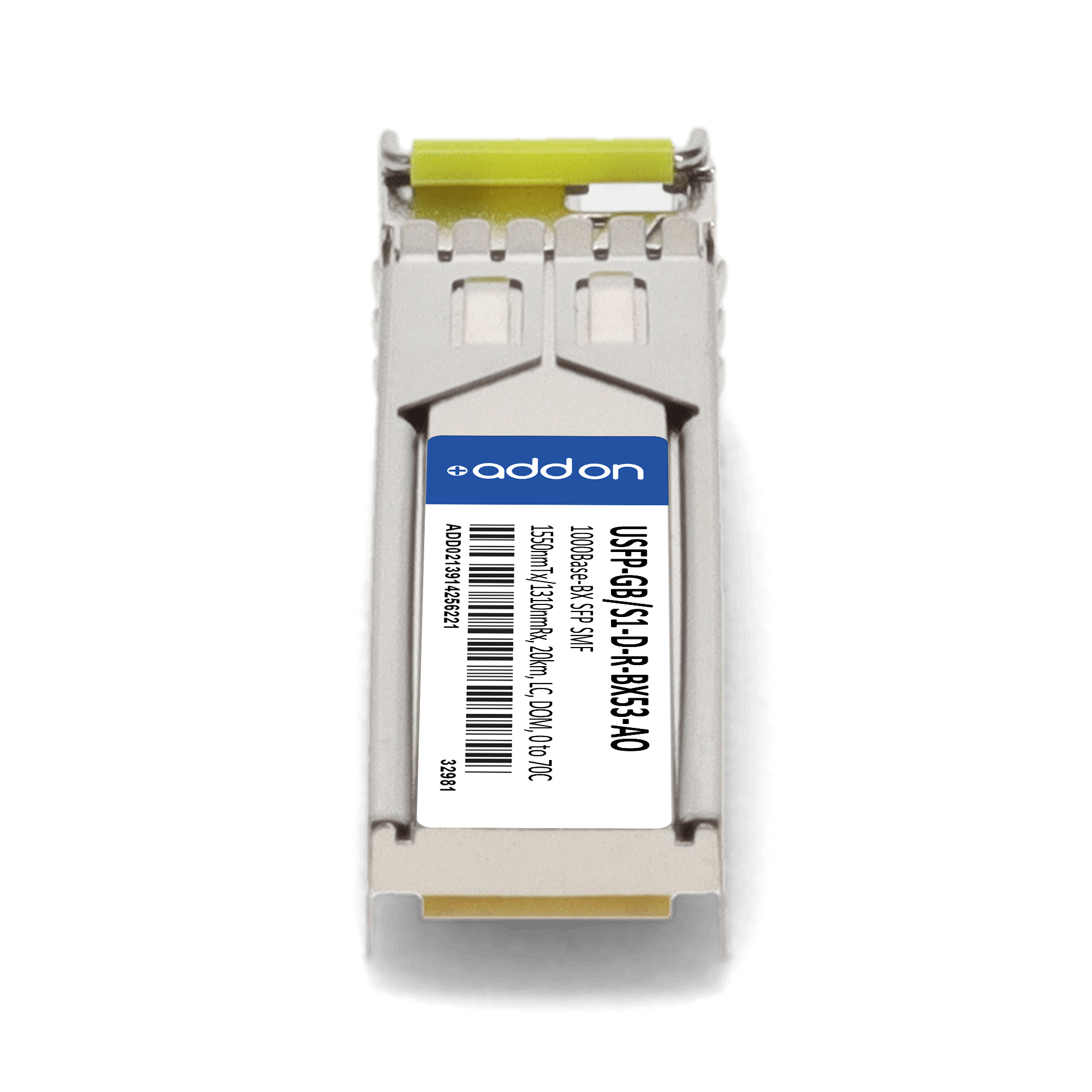 This Raisecom® USFP-GB/S1-D-R-BX53 compatible SFP transceiver provides 1000Base-BX throughput up to 20km over single-mode fiber (SMF) using a wavelength of 1550nmTx/1310nmRx via an LC connector. This bidirectional unit must be used with another transceiver or network appliance of complementing wavelengths. It is guaranteed to be 100% compatible with the equivalent Raisecom® transceiver. This easy to install, hot swappable transceiver has been programmed, uniquely serialized and data-traffic and application tested to ensure that it will initialize and perform identically. Digital optical monitoring (DOM) support is also present to allow access to real-time operating parameters. This transceiver is Trade Agreements Act (TAA) compliant. We stand behind the quality of our products and proudly offer a limited lifetime warranty.