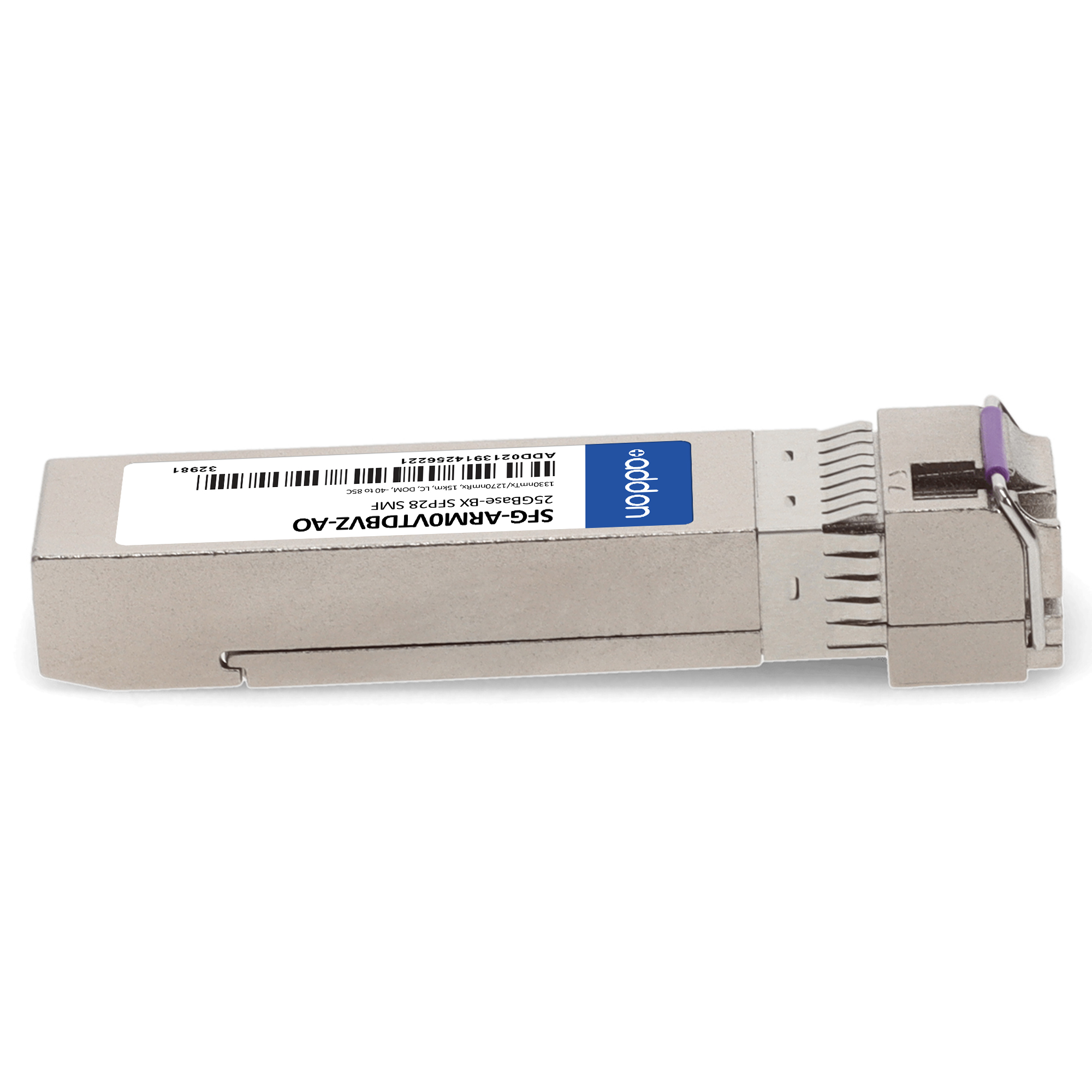 This Samsung® SFG-ARM0VTDBVZ compatible SFP28 transceiver provides 25GBase-BX throughput up to 15km over single-mode fiber (SMF) using a wavelength of 1330nmTx/1270nmRx via an LC connector. This bidirectional unit must be used with another transceiver or network appliance of complementing wavelengths. It is guaranteed to be 100% compatible with the equivalent Samsung® transceiver. This easy to install, hot swappable transceiver has been programmed, uniquely serialized and data-traffic and application tested to ensure that it will initialize and perform identically. Digital optical monitoring (DOM) support is also present to allow access to real-time operating parameters. This transceiver is Trade Agreements Act (TAA) compliant. We stand behind the quality of our products and proudly offer a limited lifetime warranty.